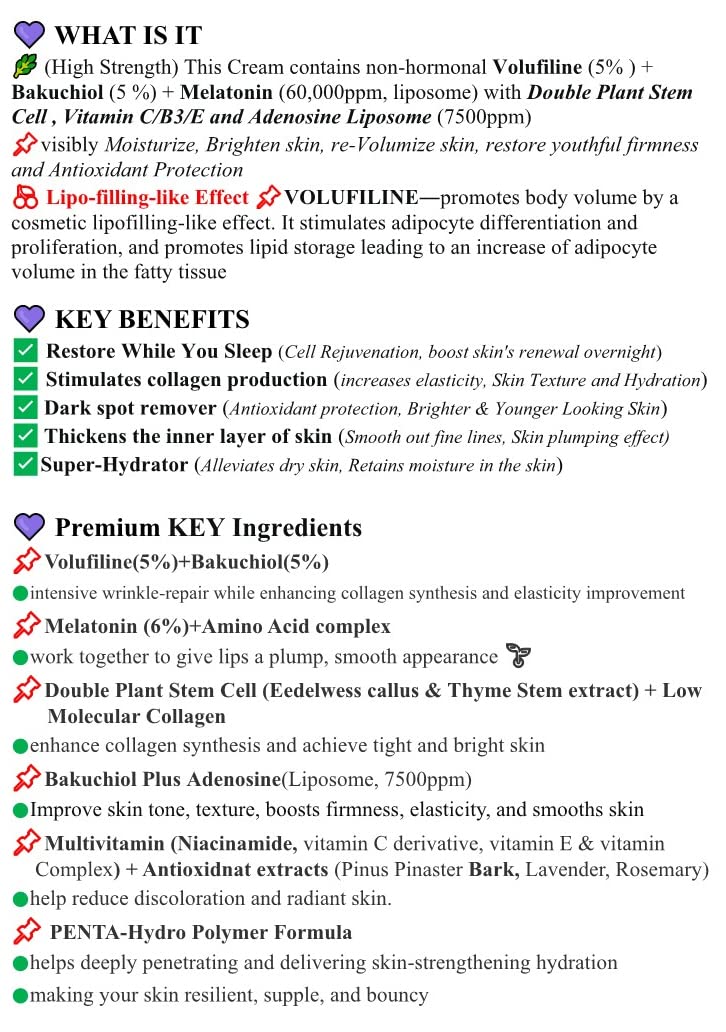ABOUT THE PRODUCT: 1 > Product Benefits Anti-aging, hydrating, lifting, cell rejuvenating Use for: neck, face 2 > [Benefits] Just a few drops of our antioxidant facial & neck cream is enough to repair the skin in troubled areas. This product helps to reduce wrinkles, increase elasticity in the skin, and rejuvenate and restore the skin with Volufiline, Bakuchiol, and Melatonin as potent anti-aging properties 3 > Directions External use only Apply twice daily (morning and night) to face and neck after cleansing and toning. Use a moderate amount (2-3 pumps) and gently massage onto the skin until fully absorbed, avoiding the eye area(Why should I use this product) Anterogen is known for cutting edge research in 3D Human Stem Cell In 2018, our product received patents on Human Stem Cell Media from the US (No. US9874574), Europe (No. EP2425844), Japan, Israel, China, Hong Kong, and other countries
