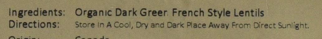 ? NUTRITIOUS Organic Dark Green French Style Lentils: The lentil plant is one of our oldest food sources, having originated in Asia and North Africa. There are many different types, but the most used in cooking are brown, red, dark speckled, green, and yellow lentils. These "beans" are extracted from their shells and split in half along their natural seams, allowing for speedier cooking and removing the need for soaking. When cooked, split peas are high in protein, fibre and low in fat