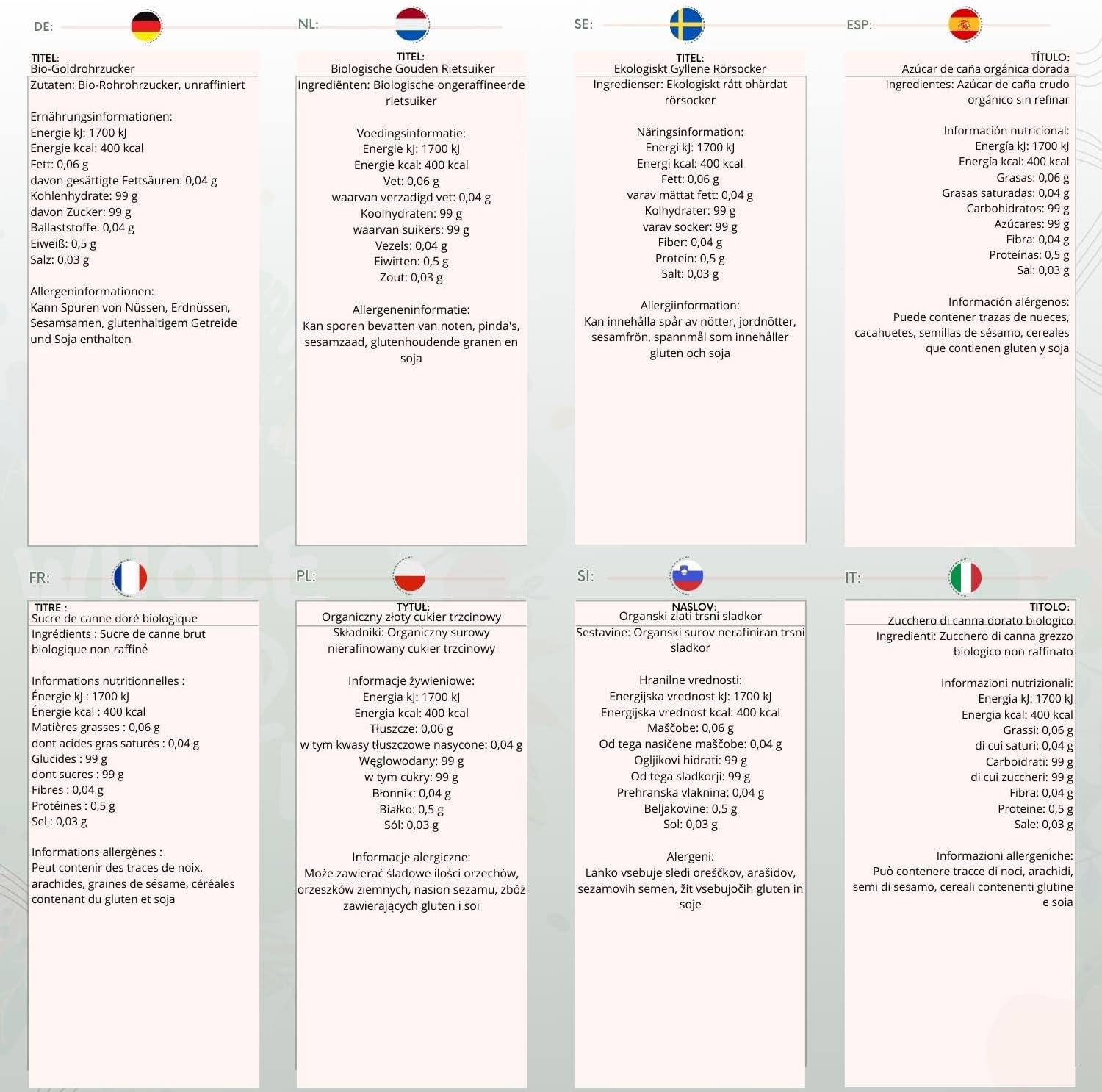 ? NUTRITIOUS Organic Golden Cane Sugar: Organic golden cane sugar is organic, it is cultivated without the use of synthetic herbicides and pesticides. Producers simply dehydrate the juice extracted from organically cultivated sugar cane. The produced crystals retain their inherent mineral, trace element, and vitamin content. Organic golden cane sugar has a pale golden color and a mild caramel flavor from molasses left in the crystal after the sugar refining process