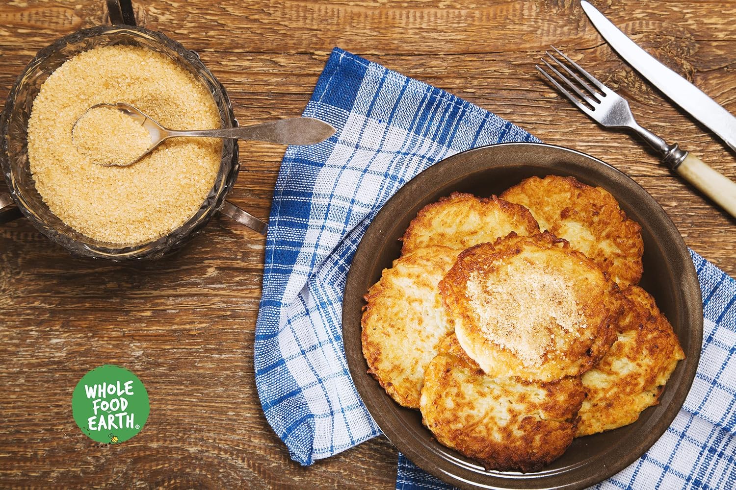 Product Description Organic golden cane sugar is prepared from sugar cane that has been farmed organically. It is organic, it was cultivated without the use of synthetic herbicides and pesticides. Producers simply dehydrate the juice extracted from organically cultivated sugar cane. The produced crystals retain their inherent mineral, trace element, and vitamin content. Organic golden cane sugar has a pale golden color and a mild caramel flavor from molasses left in the crystal after the sugar refining process. Our organic sugar cane is golden and delicious, with no aftertaste or flavor. It's great for baking and cooking, and it may also be used to sweeten beverages. Our organic sugar cane is a great 1:1 substitute for white sugar. The recipe will be richer and somewhat caramelised in color and flavor when made with golden sugar cane. We intend to get the purest gifts of Mother Nature from all over the world and offer to our customers the purest, organic, and healthy gifts of nature. Our products are gathered from the best origins In a world of fad diets, quick bites, and intricate recipes, don’t forget about simple, nourishing organic wholefoods. Wholefood Earth is certified organic and has officially been awarded a 5-star Food Hygiene Rating. We believe that Mother Nature knows best when it comes to quality, nutrition, and taste. We actively seek sustainable sources for our goods, asking our suppliers the tough questions that we know matter to our customers. Ingredients Organic Raw Unrefined Cane Sugar P.when('A').execute(function(A) { A.on('a:expander:toggle_description:toggle:collapse', function(data) { window.scroll(0, data.expander.$expander[0].offsetTop-100); }); }); Directions Perfect for baking, cooking and to sweeten hot drinks. Our Organic Cane Sugar makes a perfect 1 for 1 substitute for white sugar. Legal Disclaimer Product Packed On A Premises that handles Nuts, Seed, Soya & Sesame Manufacturer Contact Information 59-63 HOPES LANE, RAMSGATE, KENT, CT12 6UW, UK See more,? A WORLD OF GOODNESS: In a world of fad diets, quick bites, and intricate recipes, don’t forget about simple, nourishing organic wholefoods. Wholefood Earth is certified organic and has officially been awarded a 5-star Food Hygiene Rating,? NUTRITIOUS Organic Golden Cane Sugar: Organic golden cane sugar is organic, it is cultivated without the use of synthetic herbicides and pesticides. Producers simply dehydrate the juice extracted from organically cultivated sugar cane. The produced crystals retain their inherent mineral, trace element, and vitamin content. Organic golden cane sugar has a pale golden color and a mild caramel flavor from molasses left in the crystal after the sugar refining process,? HIGH-QUALITY INGREDIENTS: Our organic sugar cane is golden and delicious, with no aftertaste or flavor. It's great for baking and cooking, and it may also be used to sweeten beverages. Our organic sugar cane is a great 1:1 substitute for white sugar. The recipe will be richer and somewhat caramelised in color and flavor when made with golden sugar cane,? INSTRUCTIONS FOR USE: This unrefined cane Sugar is a classic essential cooking ingredient. It's perfect for sweetening food of all kinds, from puddings, tarts and cakes, sweet treats, and baked goods right through to hot and cold beverages like tea, coffee, milkshakes, and fizzy drinks,? JUST THE GOOD STUFF / FULLY RECYCLABLE PACKAGING: We intend to get the purest gifts of Mother Nature from all over the world and offer to our customers the purest, organic, and healthy gifts of nature. Our products are gathered from the best origins,? OUR STORY: We believe that Mother Nature knows best when it comes to quality, nutrition, and taste. We actively seek sustainable sources for our goods, asking our suppliers the tough questions that we know matter to our customers