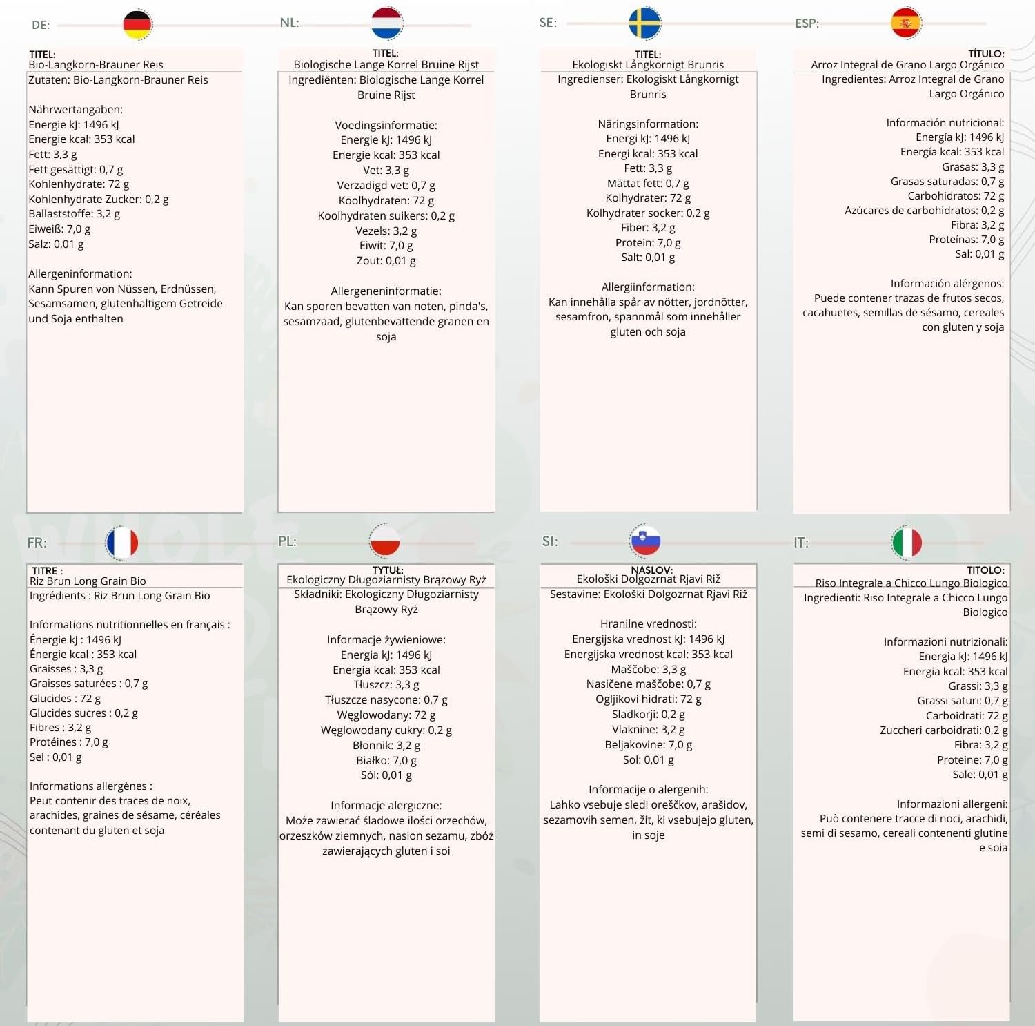 ? NUTRITIOUS Organic Long Grain Brown Rice: Brown rice is a high-nutritional-value food. A low-calorie whole grain, high in fibre, and adaptable to a range of cuisines. Rice is a great source of minerals and vitamins. Because long-grain rice is less sticky and delicate, it requires less water to cook, than short-grain rice