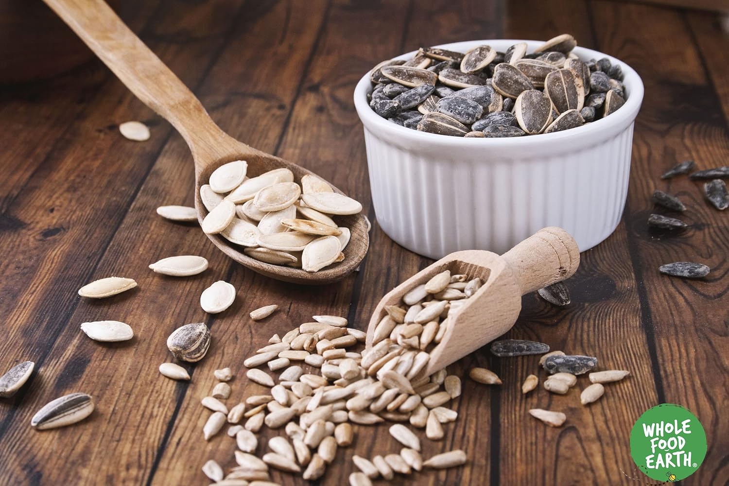 Product Description Pumpkin seeds are a rich source of energy. Pumpkin seeds are high in vitamins and minerals. Sunflower seeds have health advantages since they include vitamins, minerals as well as substantial levels of unsaturated fatty acids. Make your food look beautiful, tasty, and healthy by sprinkling pumpkin and sunflower seeds. Soups, second-course sauces, pastries, and smoothies can all benefit from the addition of seeds. It may be eaten raw as well. The seeds can be combined with green salads, cereals, and granola. We intend to get the purest gifts of Mother Nature from all over the world and offer to our customers the purest, organic, and healthy gifts of nature. Our products are gathered from the best origins In a world of fad diets, quick bites, and intricate recipes, donāt forget about simple, nourishing organic wholefoods. Wholefood Earth is certified organic and has officially been awarded a 5-star Food Hygiene Rating. We believe that Mother Nature knows best when it comes to quality, nutrition, and taste. We actively seek sustainable sources for our goods, asking our suppliers the tough questions that we know matter to our customers. Ingredients Organic Pumpkin Seed (50%), Organic Sunflower Seed (50%) P.when('A').execute(function(A) { A.on('a:expander:toggle_description:toggle:collapse', function(data) { window.scroll(0, data.expander.$expander[0].offsetTop-100); }); }); Directions Always Read The Ingredients On The Product Packaging If You Have Allergies or Dietary Requirements. MAY CONTAIN TRACES OF NUTS, PEANUTS, SESAME SEED, CEREALS CONTAINING GLUTEN & SOYA Manufacturer Contact Information 59-63 HOPES LANE, RAMSGATE, KENT, CT12 6UW, UK See more,? A WORLD OF GOODNESS: In a world of fad diets, quick bites, and intricate recipes, donāt forget about simple, nourishing organic wholefoods. Wholefood Earth is certified organic and has officially been awarded a 5-star Food Hygiene Rating,? NUTRITIOUS Pumpkin & Sunflower Seeds: Pumpkin seeds are a rich source of energy. Pumpkin seeds are high in vitamins and minerals. Sunflower seeds have health advantages since they include vitamins, minerals as well as substantial levels of unsaturated fatty acids,? HIGH-QUALITY INGREDIENTS: Make your food look beautiful, tasty, and healthy by sprinkling pumpkin and sunflower seeds. Soups, second-course sauces, pastries, and smoothies can all benefit from the addition of seeds. It may be eaten raw as well. The seeds can be combined with green salads, cereals, and granola,? JUST THE GOOD STUFF / FULLY RECYCLABLE PACKAGING: We intend to get the purest gifts of Mother Nature from all over the world and offer to our customers the purest, organic, and healthy gifts of nature. Our products are gathered from the best origins,? OUR STORY: We believe that Mother Nature knows best when it comes to quality, nutrition, and taste. We actively seek sustainable sources for our goods, asking our suppliers the tough questions that we know matter to our customers