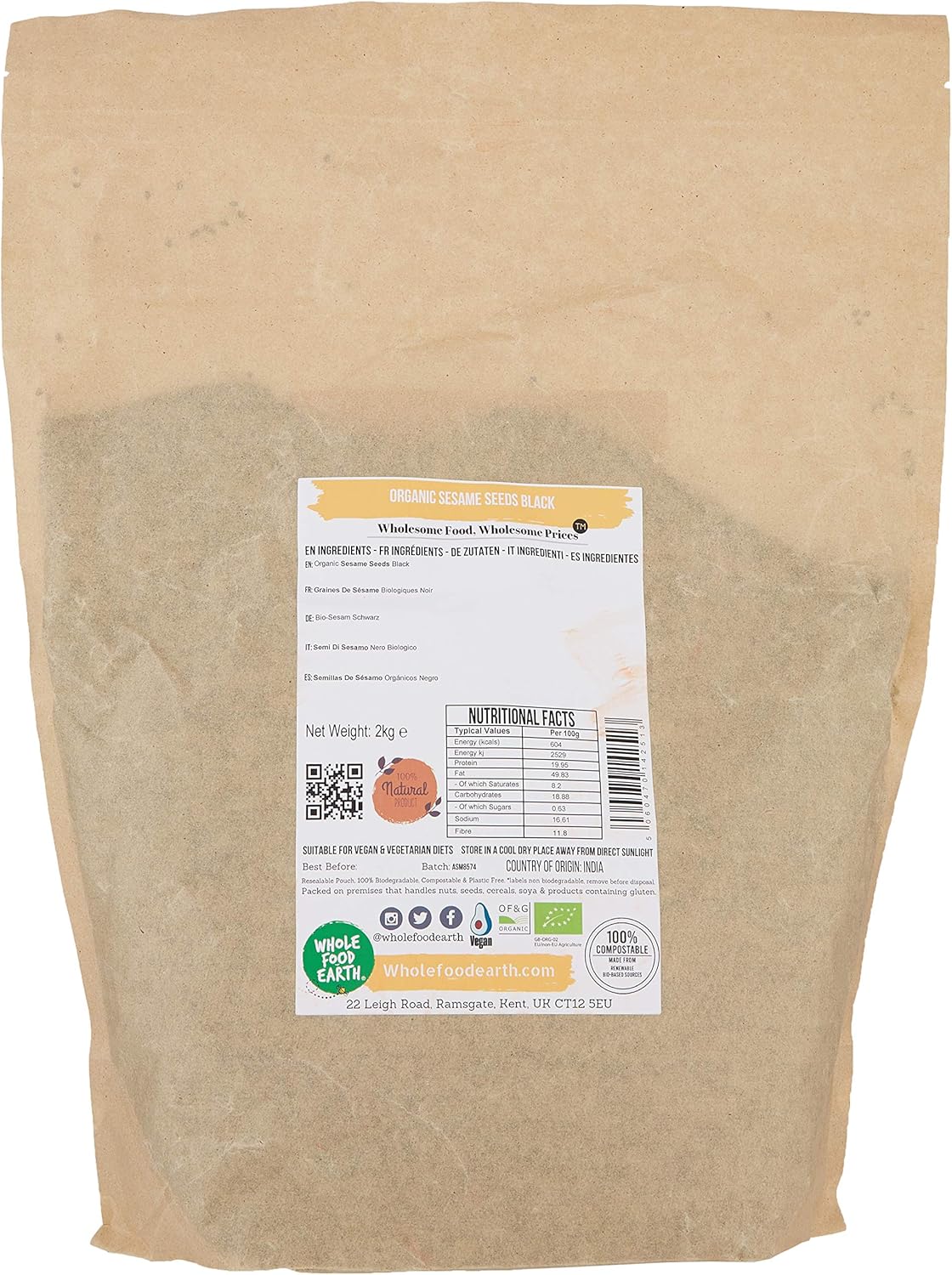 Wholefood Earth Organic Sesame Seeds Black 2Kg Raw | Gmo Free | Vegan | Certified Organic