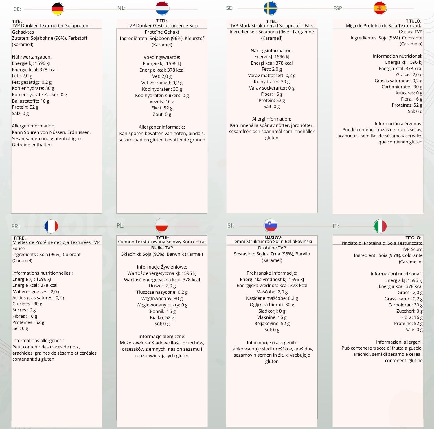 ? TVP Dark Textured Soya Protein Mince: TVP stands for textured vegetable protein; however, because it is manufactured from soya beans, a more correct term would be textured soya protein. Like tofu, it's a fantastic non-meat alternative in casseroles, stews, and curries since it is rather bland and quickly absorbs the flavours and spices of the recipe