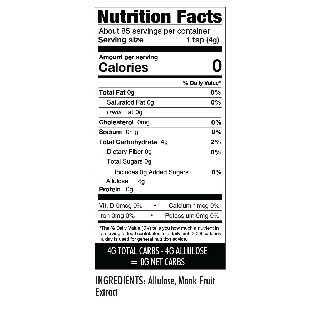 Sugar Free, 0 Calorie & 0 Carb. With Zero Net Carbs And Zero Sugar, Our Natural Granulated Sweetener Has Zero Glycemic Impact And Won'T Spike Blood Sugar. It'S Perfect For Your Healthy Sugar Free Lifestyle!