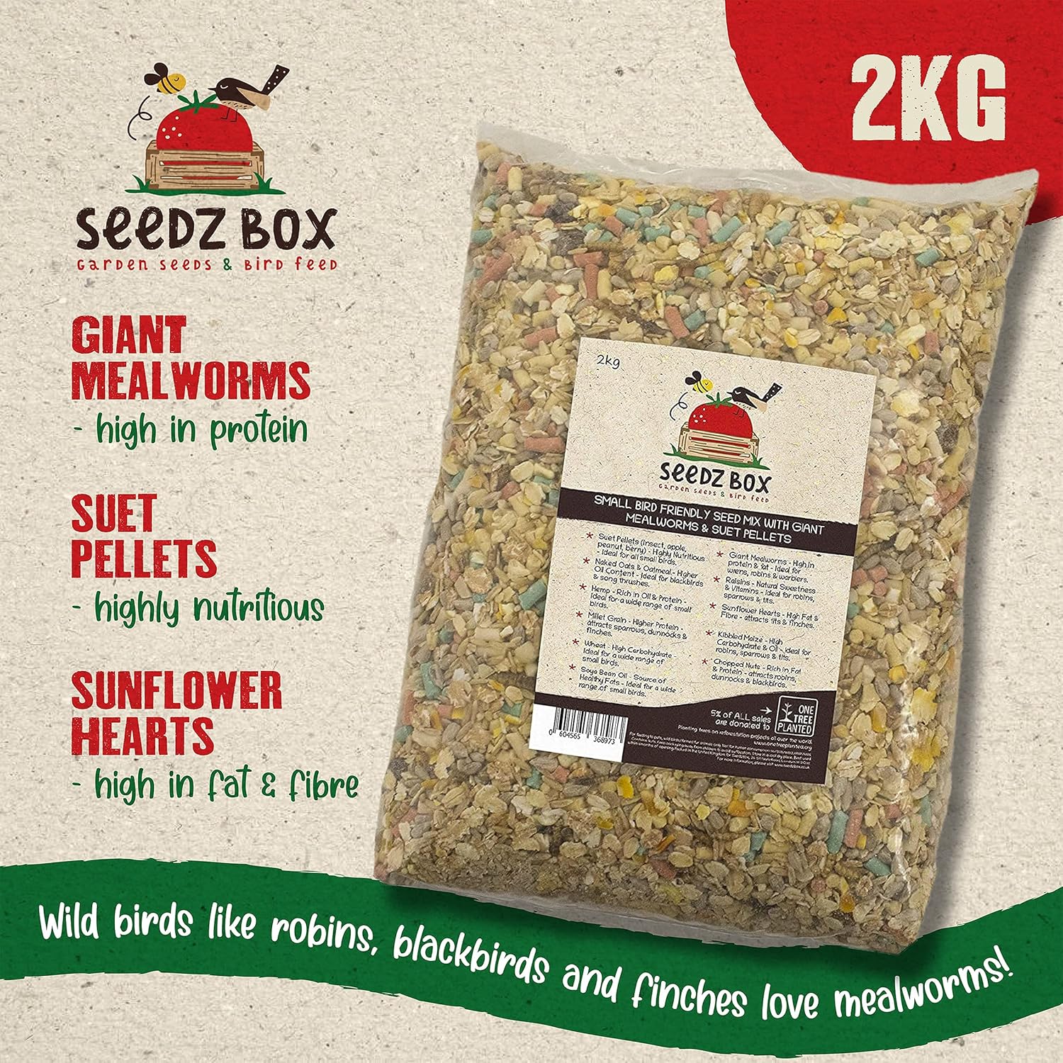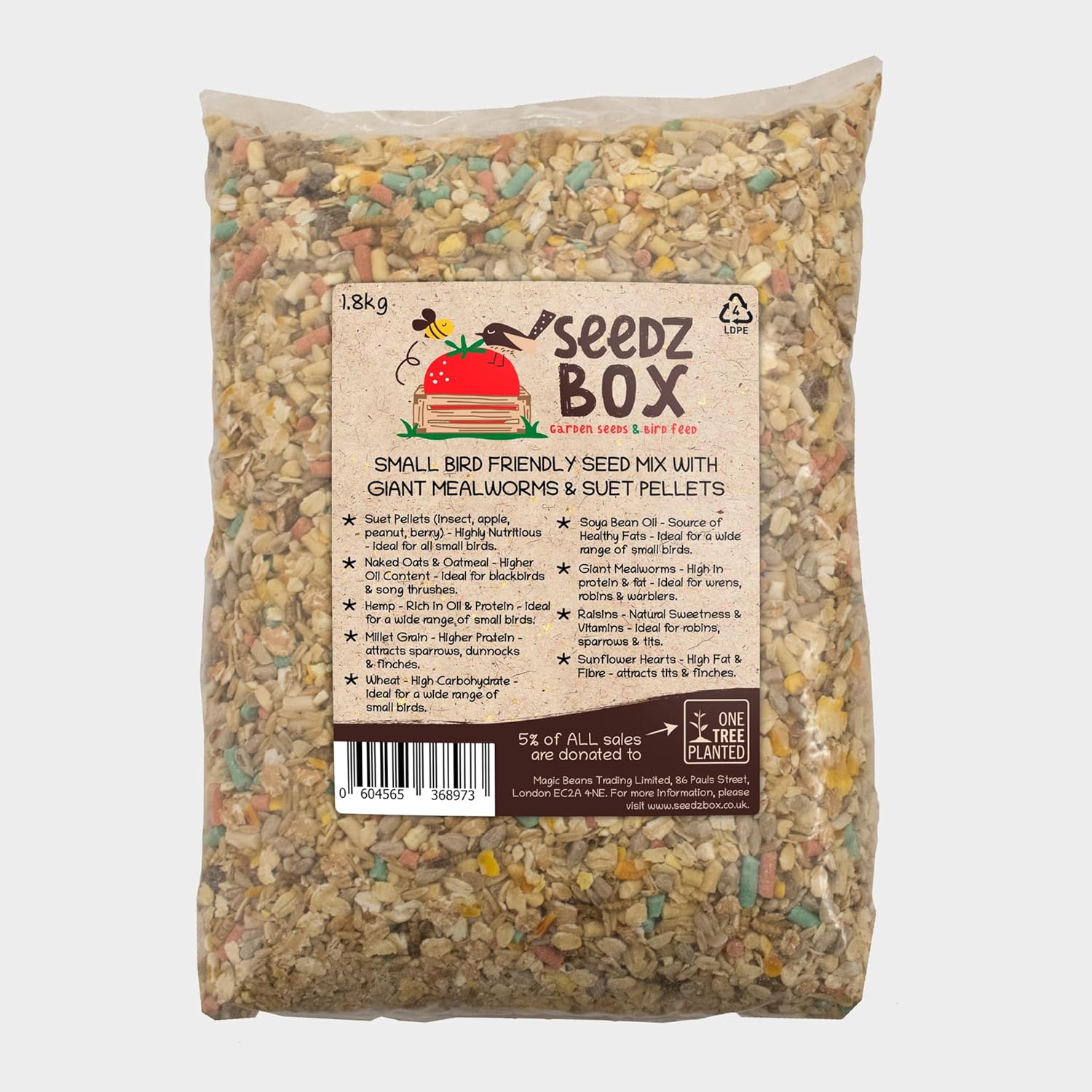 Wild Bird Food Seed Feed Mix With Suet Pellets For Small Garden Birds 1.8Kg - Seedzbox - Deluxe Grains & Nuts - Natural Food For Wrens Robins & Finches
