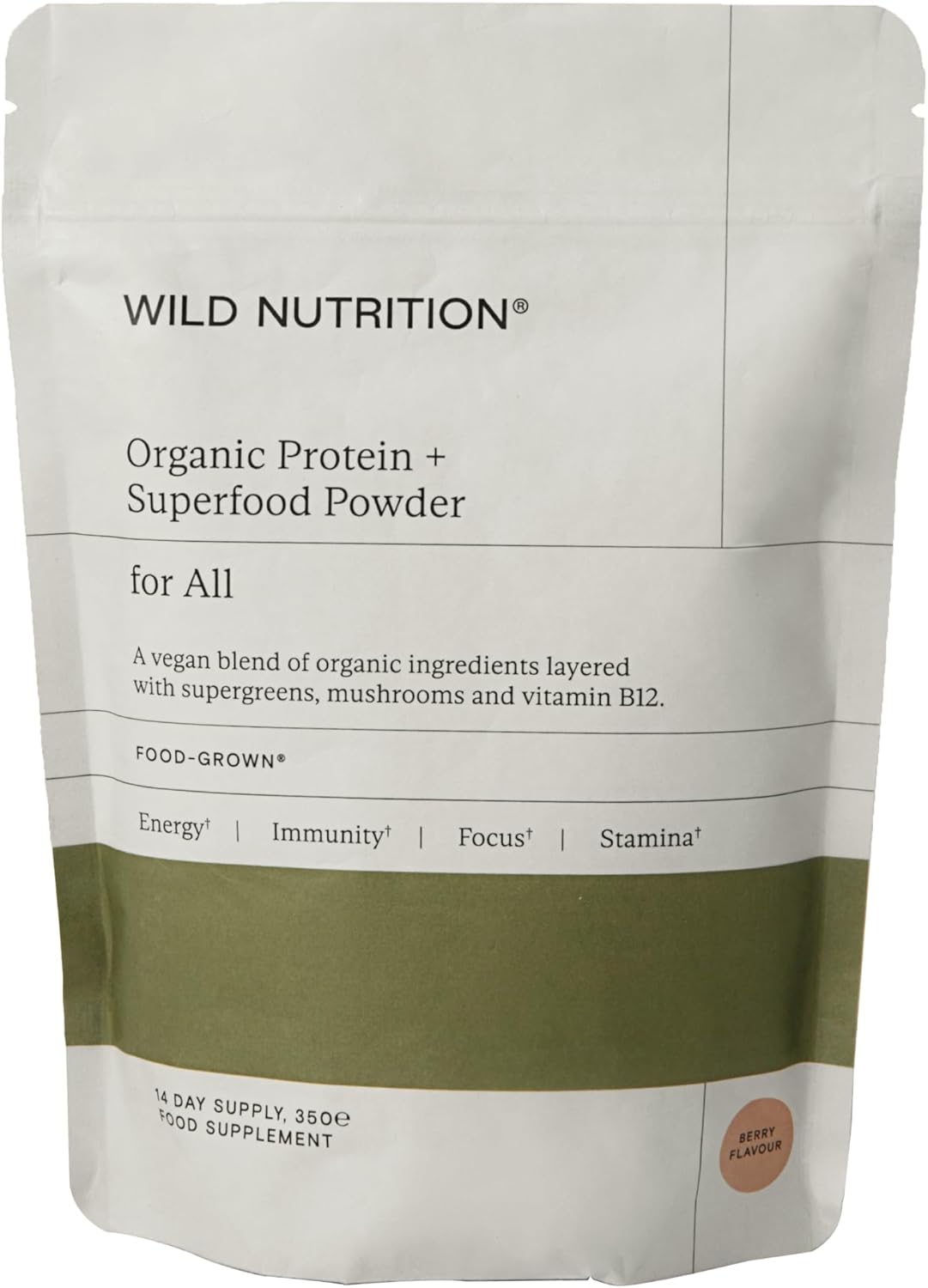 Wild Nutrition Food-Grown® Vegan Protein Powder Super Food Blend | Organic Ingredients No Synthetics | Pea Protein, Sprirulina, Reishi, Chaga, Wheatgrass & More | Gluten Free