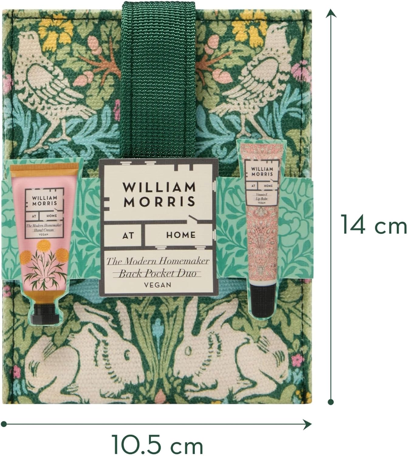 William Morris At Home Hand Cream 30Ml And Lip Balm 10Ml In Display Tray With Canvas Pocket Pouch, Shea Butter And Jojoba Oil, Beauty Gift For Her, Travel Size, Cruelty And Vegan Friendly