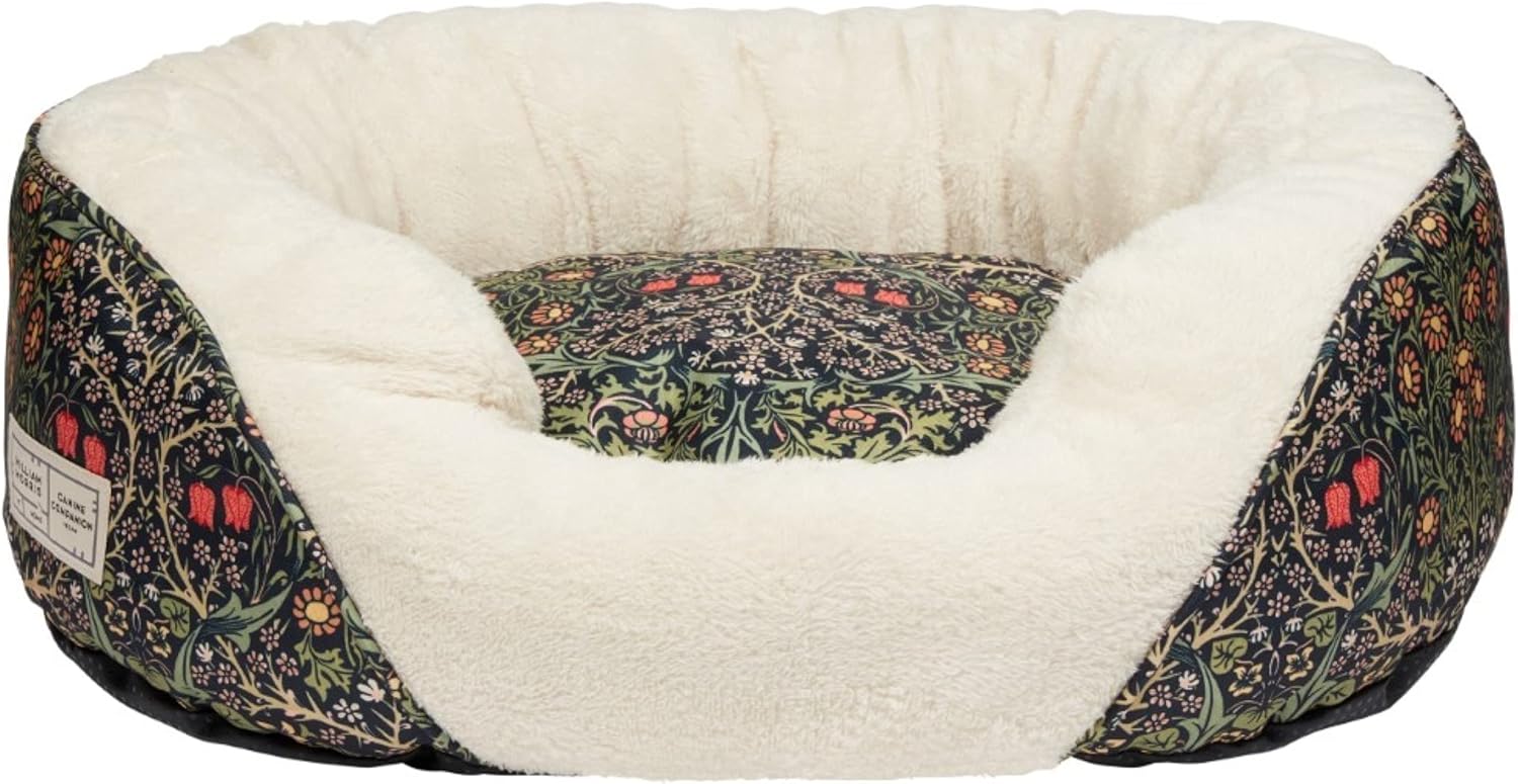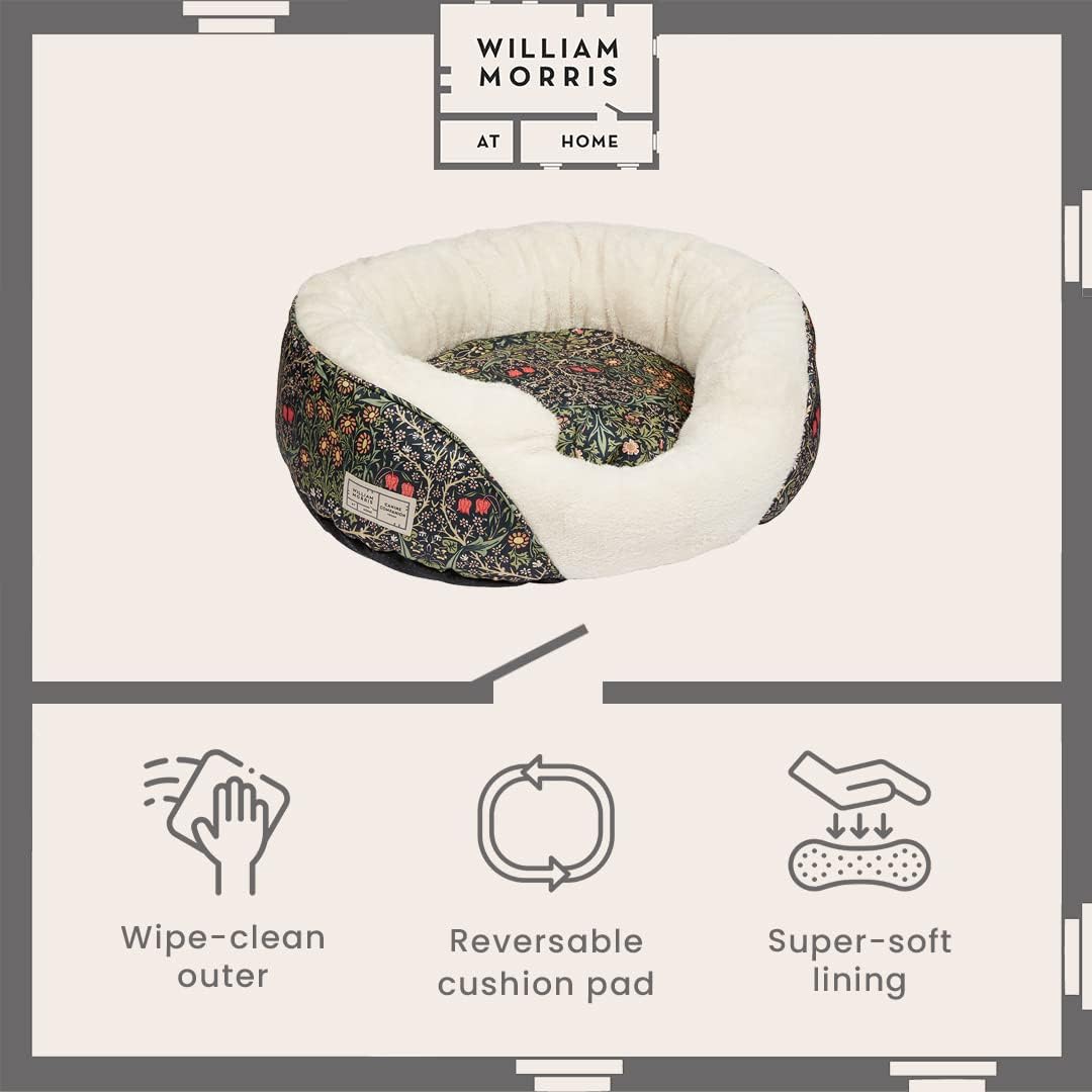 William Morris At Home Super-Soft Fleece Lining Cosy Bed For Pet Dog And Cat Dark Green