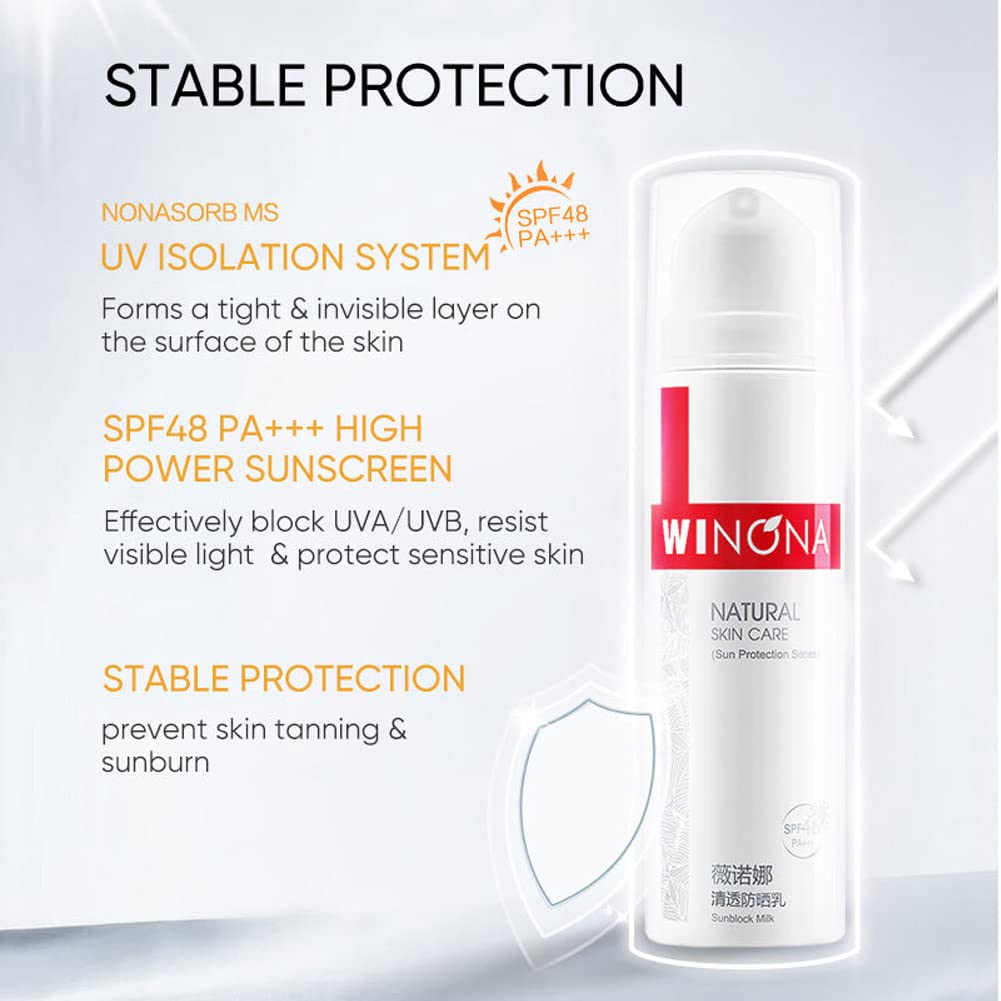 WINONA Sunblock Milk,SPF 48+++ Face Sunscreen, Broad Spectrum Sunscreen for Sensitive Skin with Portulaca Oleracea Extract (1.7 )