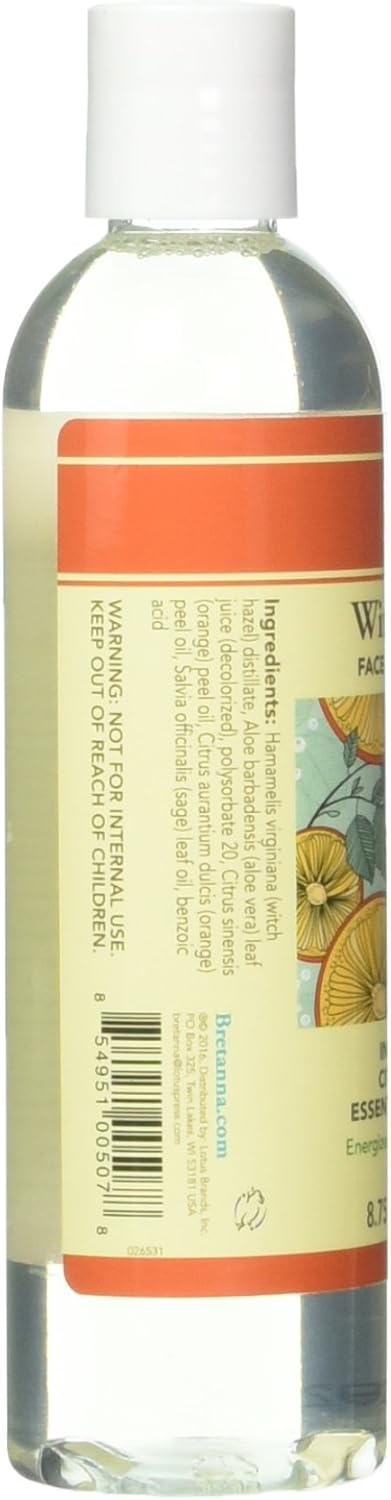 Bretanna Witch Hazel helps tone, clean and hydrate skin. May reduce blemishes form acne and other skin irritations, and delay singe of aging. Citrus oil creates an energizing, fresh scent