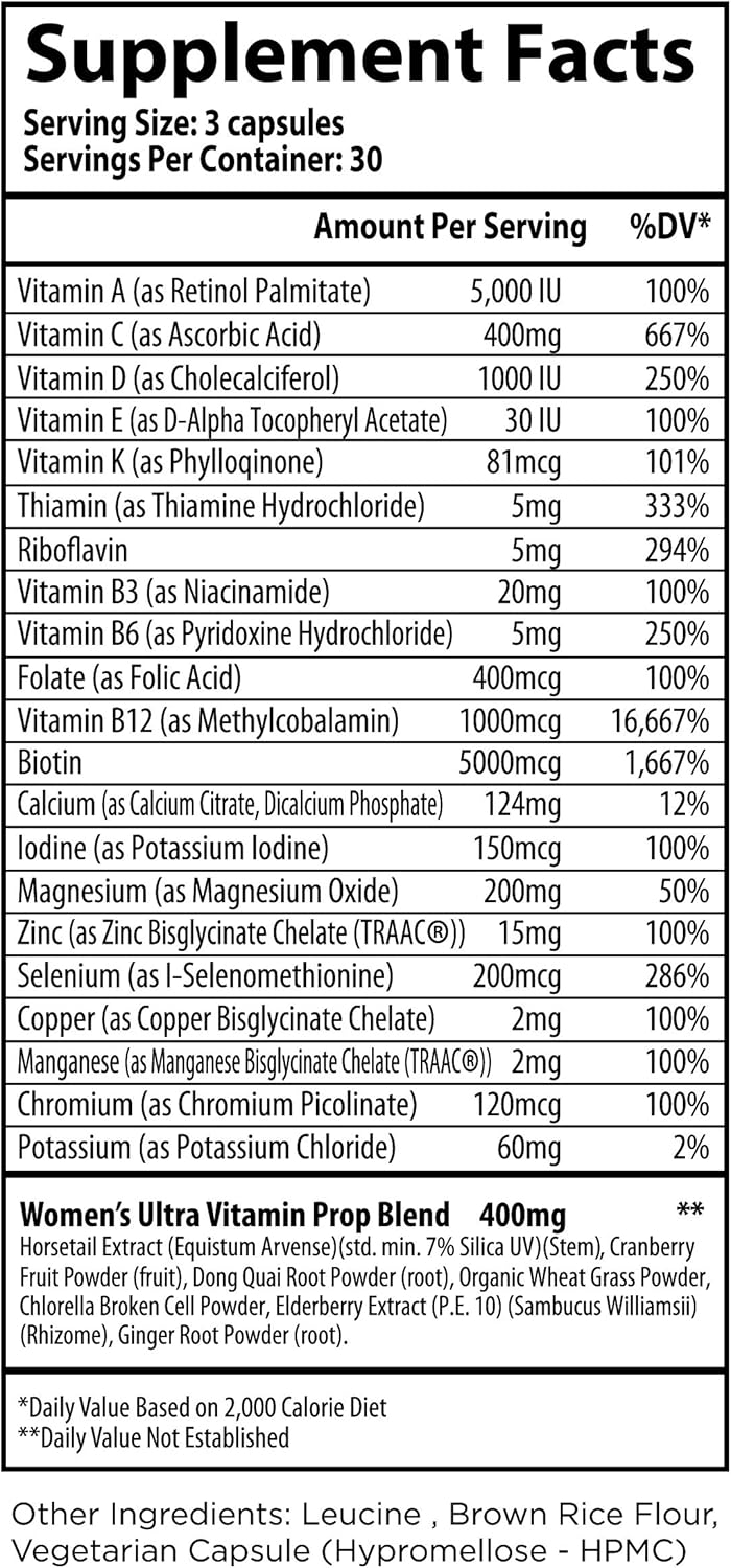 Women'S Ultra-Vitamin Multivitamin - Essential Nutrient Blend With Elderberry, Vitamin C, Zinc, And Vitamin D - 90 Vegetarian Capsules For 30-Day Supply