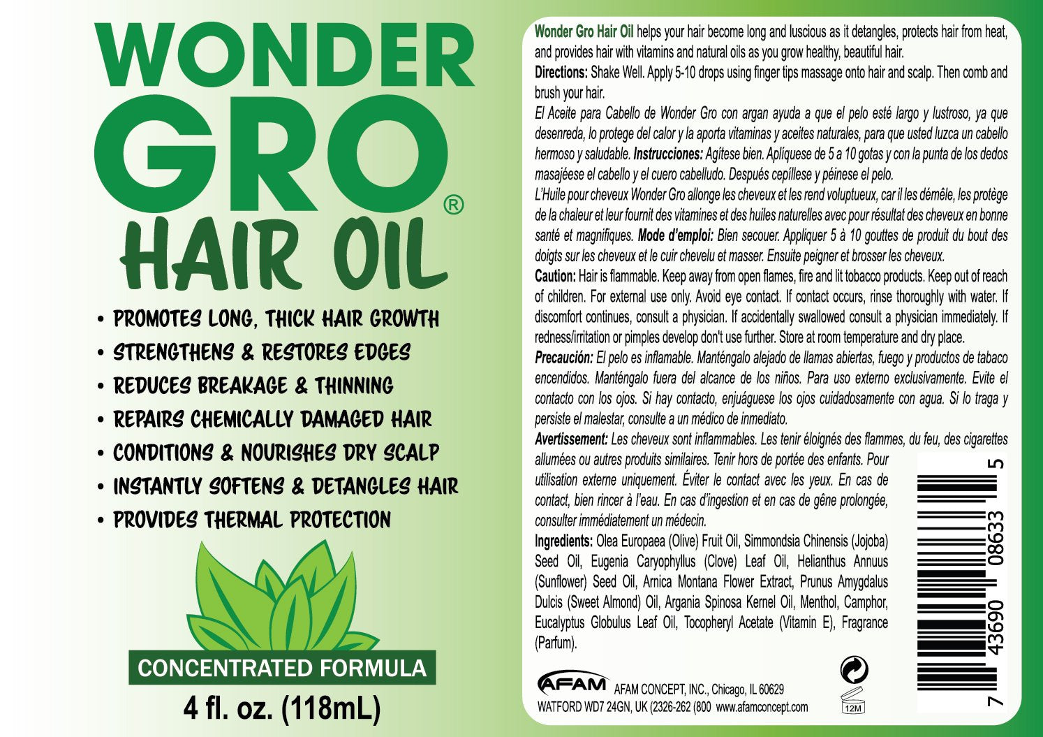 Wonder Gro Hair Growth Oil & Thermal Protection, 4 Fl Oz - Strengthens & Restores Edges