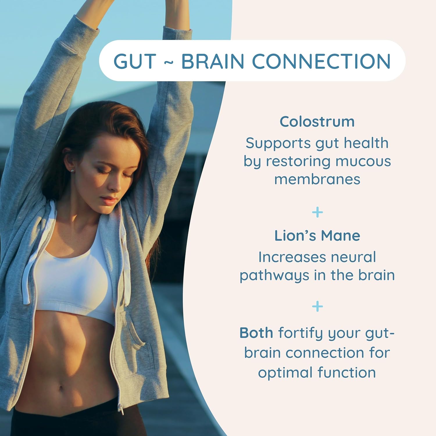 Gut-Brain Connection: The Combination Of Bovine Colostrum And Lion'S Mane Mushroom In Our Creamer Supports The Gut-Brain Connection, Which Is Important For Overall Brain Health And Cognitive Function. The Gut Is Home To A Vast Network Of Neurons That Communicate With The Brain, And By Supporting The Gut Microbiome, We Can Improve Brain Function And Reduce Bloating