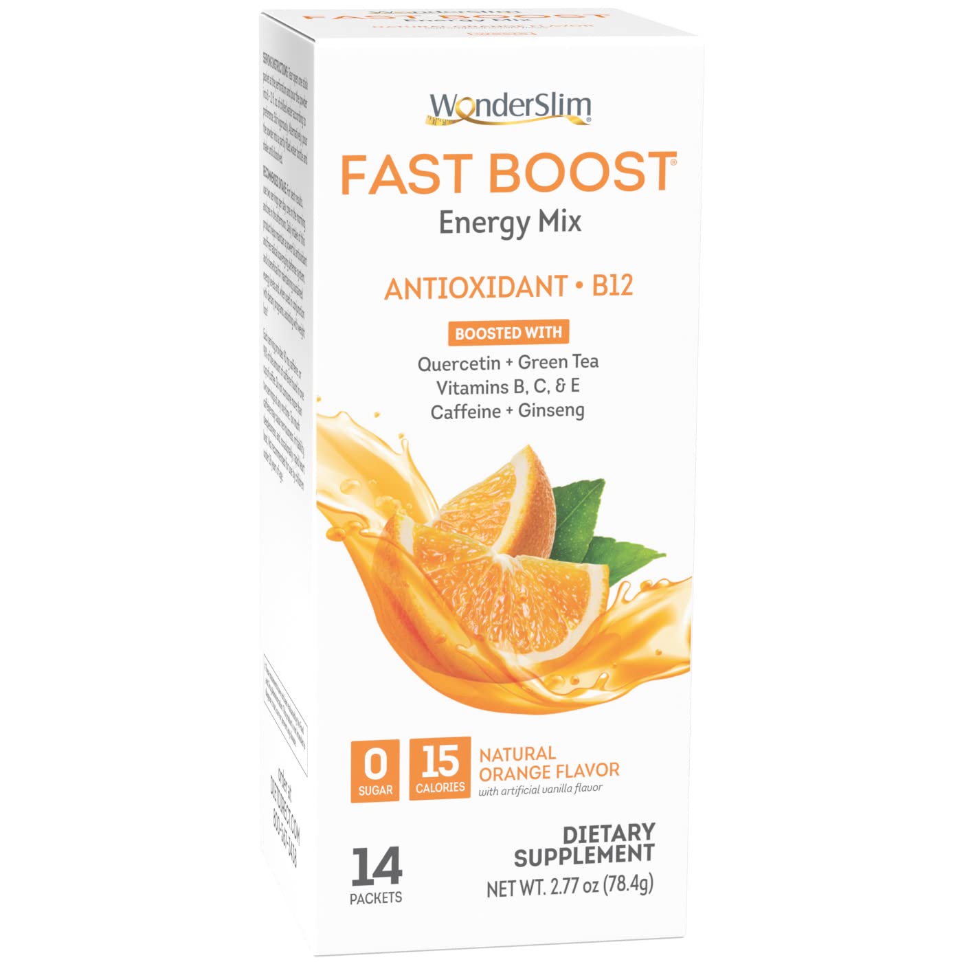 Wonderslim Fast Boost Energy Drink Mix With B12, Orange, Multivitamins, Antioxidants, No Sugar, Gluten Free, Keto Friendly & Low Carb (14Ct)