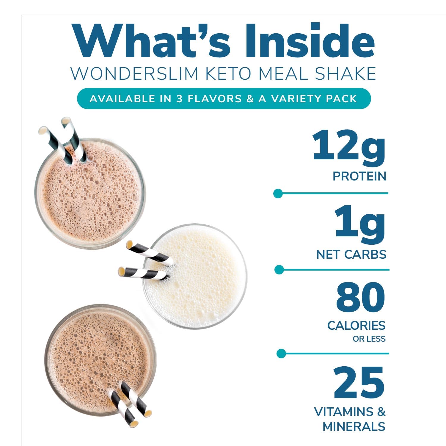 Wonderslim Keto Meal Replacement Shake, Chocolate, Low Carb, C8 Mcts, 12G Protein, Collagen, 25 Vitamins & Minerals, Gluten Free (7Ct)