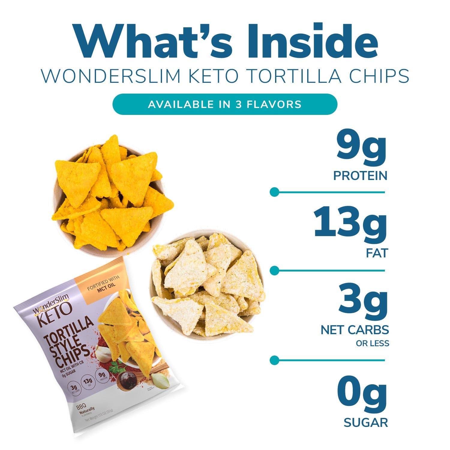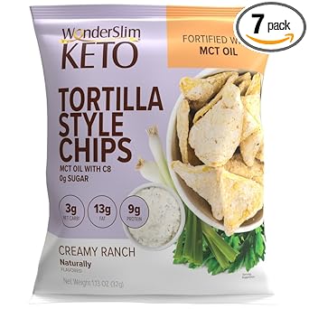 Wonderslim Keto Tortilla Chips With Mct Oil, Creamy Ranch, 3G Net Carbs, 13G Fat, 9G Protein, 0G Sugar, Gluten Free (7Ct)