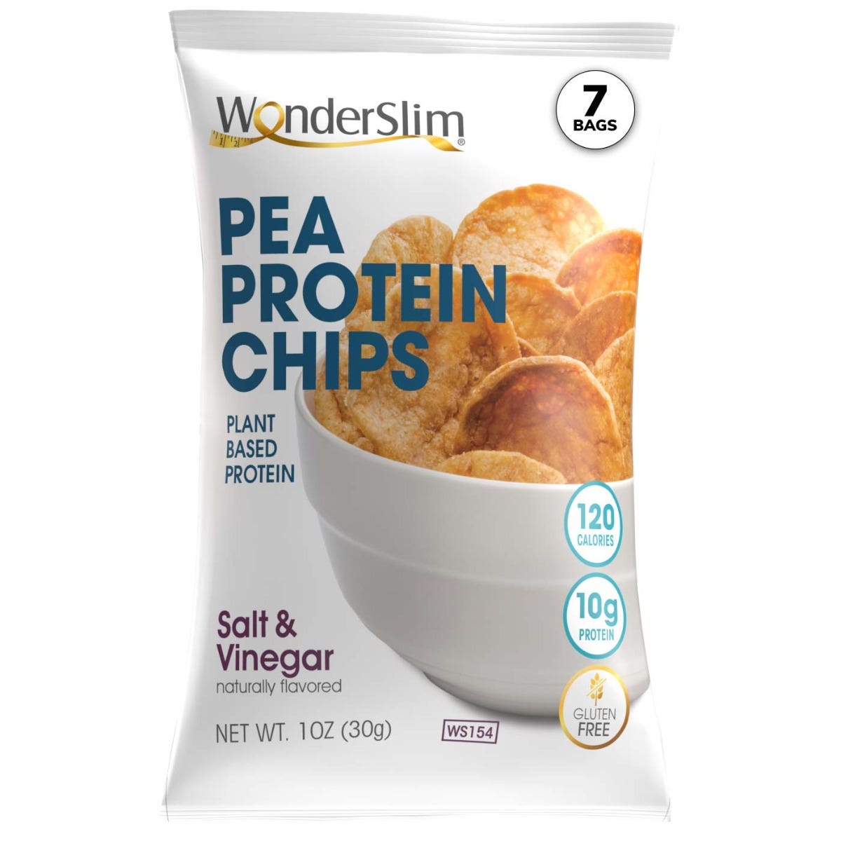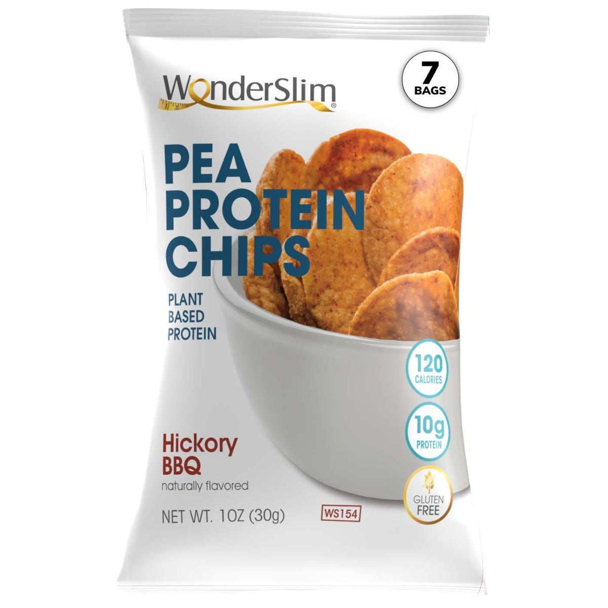 Crave the zest and tang of Cool Ranch potato chips, but avoid them because of a diet? WonderSlim has the perfect answer for this predicament: Pea Protein Snack Chips. Each 130 calorie bag contains an amazing 10 grams of heart-healthy pea protein, all without compromising nutrition or taste. Whereas conventional potato chips can leave a hungry (and guilty) feeling, WonderSlim Pea Protein chips unlock the power of pea protein to feel fuller, longer. WonderSlim Pea Protein chips are conveniently packaged to easily take them wherever on the go. Each individually sealed pack serves as a welcome snack between meals, or as a post-workout hunger buster. Make sure to take a bag of WonderSlim Pea Protein chips on the next adventure! WonderSlim - Weight Management Made Simple. THE POWER OF PEAS: A light and nutritious alternative to conventional potato chips, these snacks pack 10 grams of pea protein and 10g net carbs in each bag. MOUTHWATERING TASTE: These protein chips are as tangy and zesty as any of the top-selling Cool Ranch potato chips on the market, just without the sugar, saturated fat, and cholesterol. These pea protein chips are also certified gluten-free. CONVENIENT PORTIONS: At only 130 calories per serving, WonderSlim Pea Protein snack chips are conveniently portioned to fuel on the go. EASY DIETING WITH WONDERSLIM: Create an individual diet regime with our delicious range of drinks, shakes, breakfasts, entrees, supplements, soups, and more