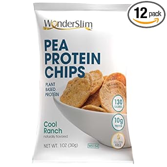 Wonderslim Pea Protein Snack Chips, Cool Ranch, 130 Calories, 10G Protein, Gluten Free (12Ct)