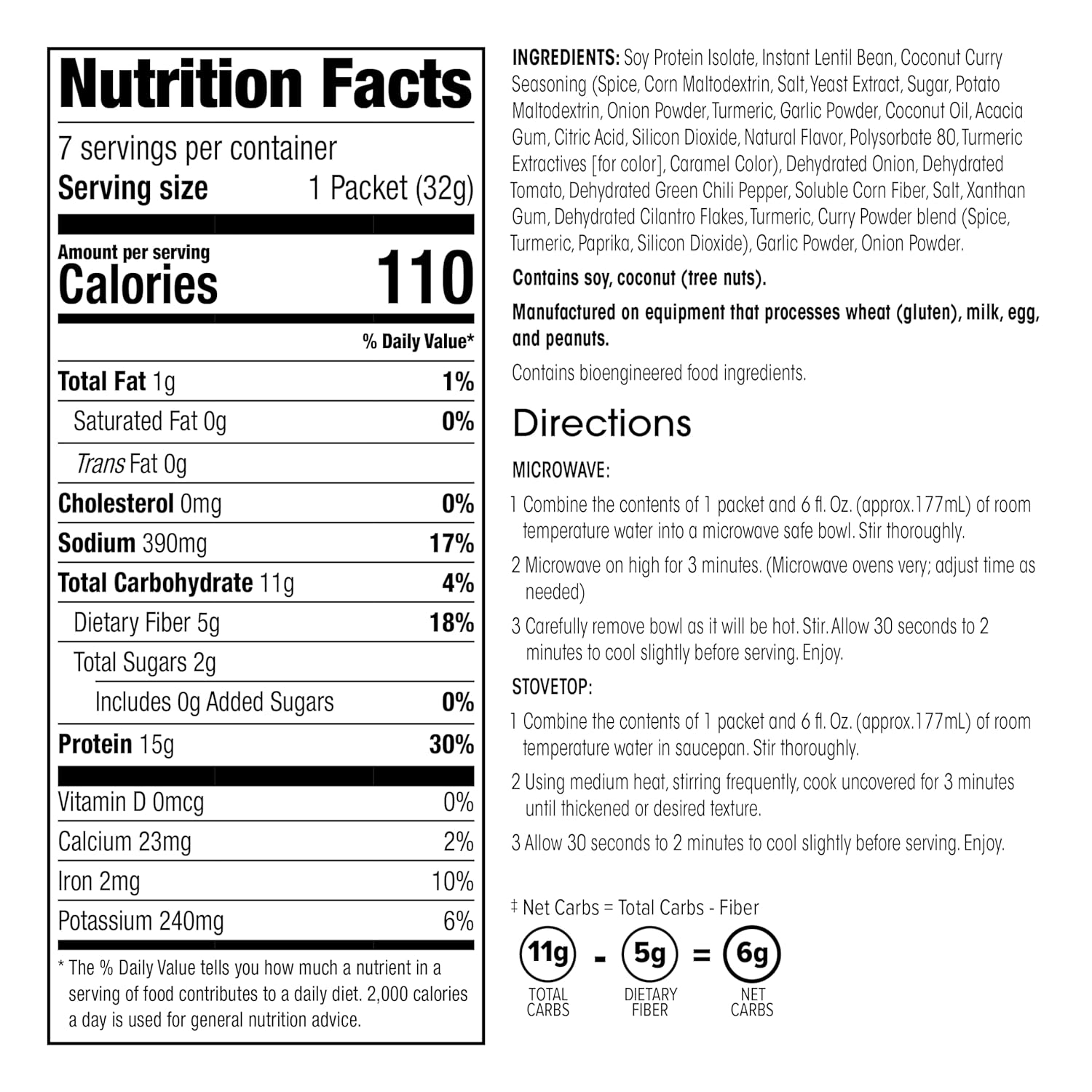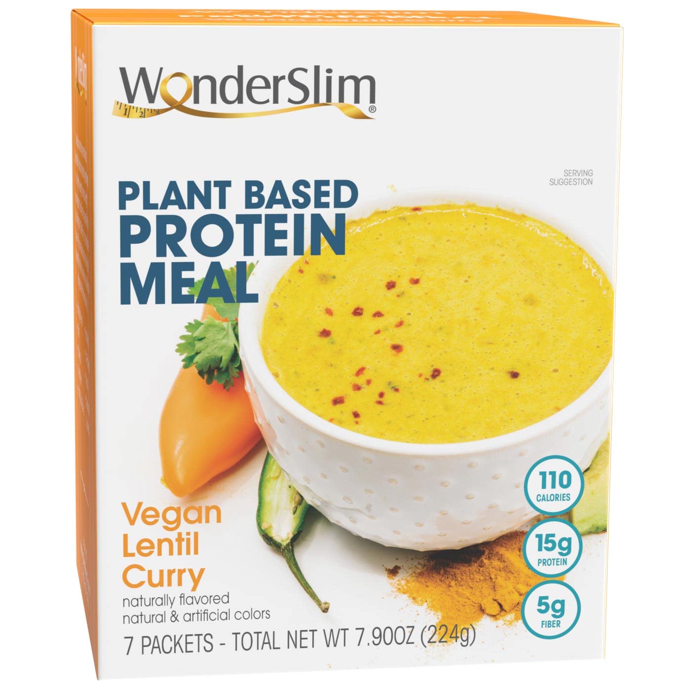 Wonderslim Plant Based Protein Meal, Vegan Lentil Curry, 5G Fiber, Gluten Free, Low Carb (7Ct)