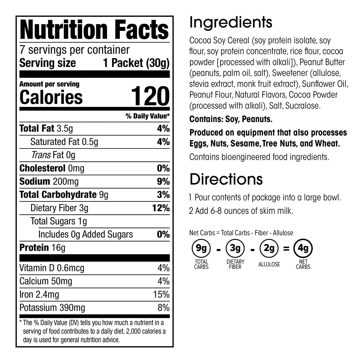 Wonderslim Protein Cereal, Chocolate Peanut Butter, Low Sugar, Gluten Free, Keto Friendly & Low Carb (7Ct)