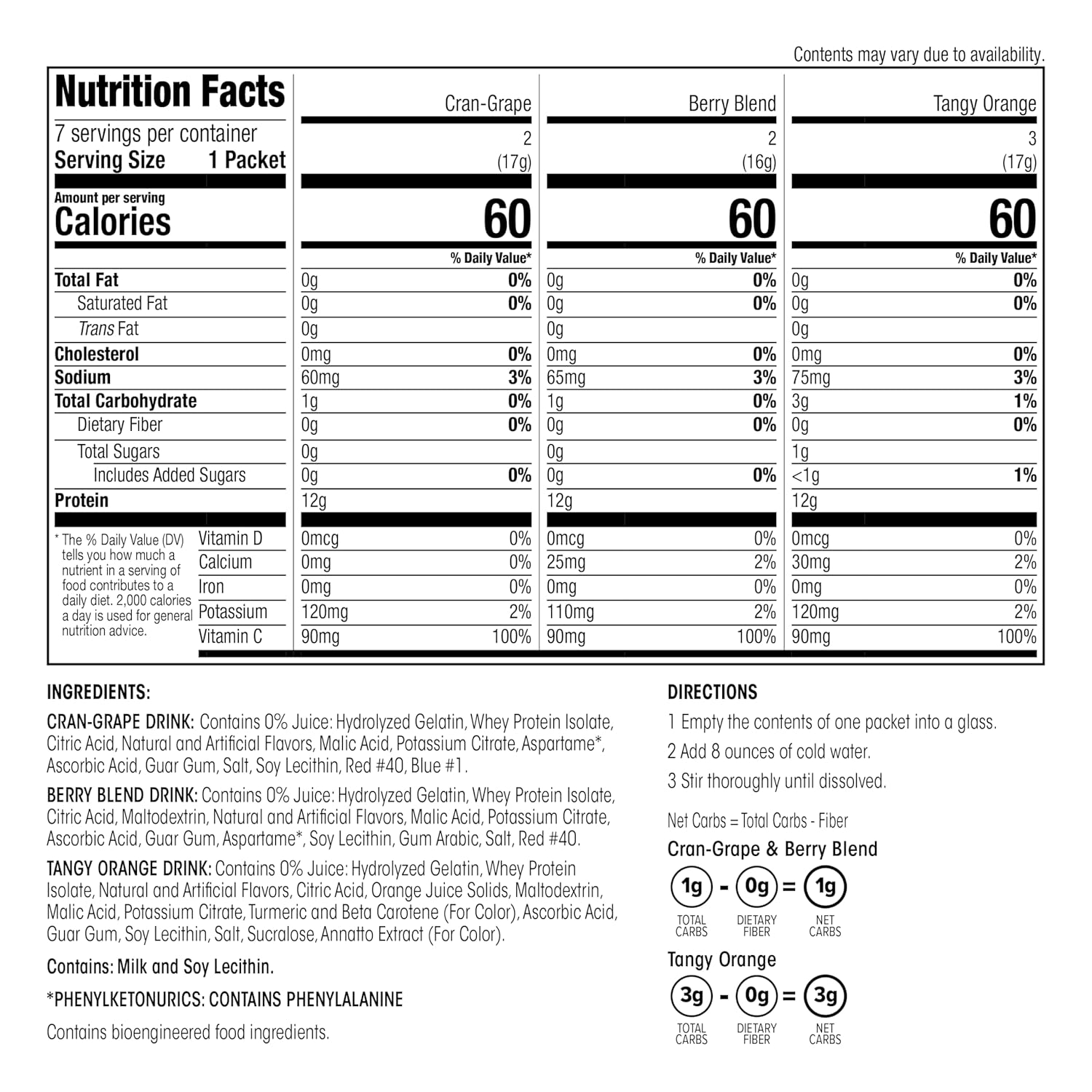 Delicious Protein Fruit Drink: Zesty And Delicious, This Fruit-Flavored Powdered Drink Mix Contains Only 60 Calories & 1G Or Less Of Sugar Per Serving. Allowing Anyone To Enjoy A Sweet Fruit Flavor Without The Added Sugar! This Product Contains 3G Or Less Net Carbs, Making It A Keto-Friendly Option As Well
