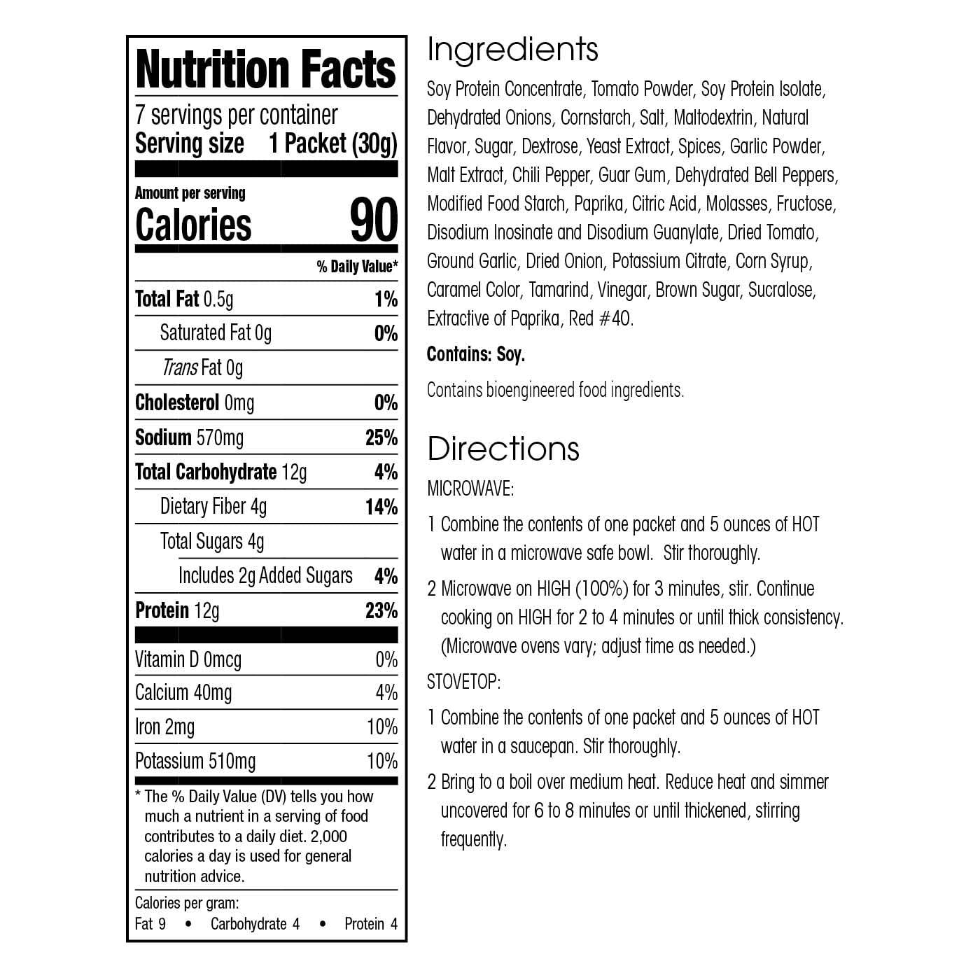 Quality Ingredients: This Vegetarian Sloppy Joe Mix Contains 0.5G Fat, 0G Cholesterol, And Is Certified Kosher. The Perfect Choice To Satisfy Those Cravings For Something Warm, Filling, And Delicious At Only 90 Calories Per Serving