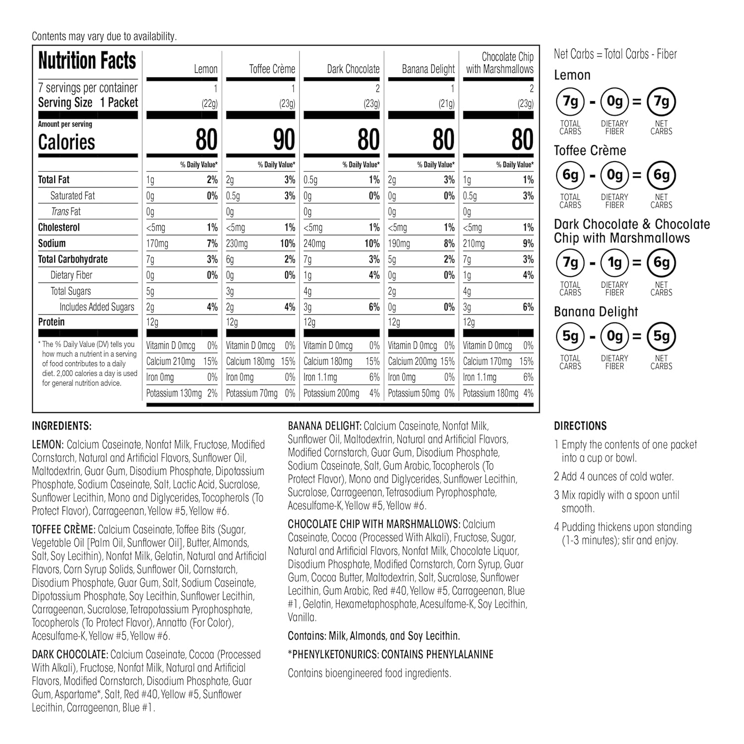 Carb Conscious: Our Protein Pudding Mix Is Low In Carbs At 7G Net Carbs Or Less With Keto Friendly Options Available! Making It An Ideal Choice For Those Following A Carb-Conscious Lifestyle