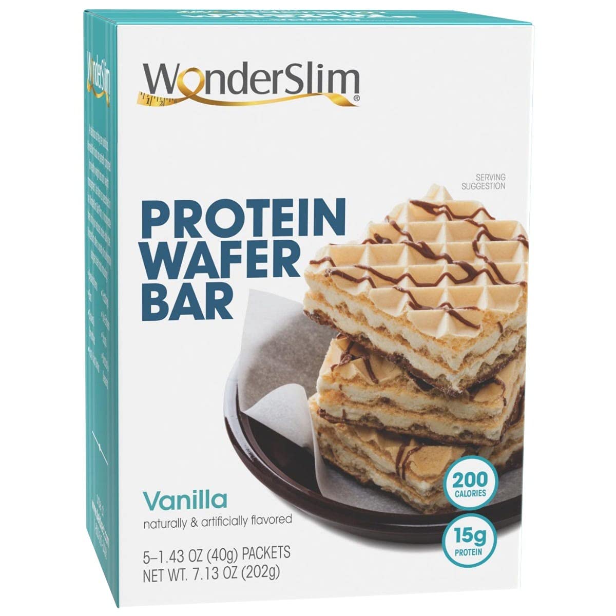 Wonderslim Protein Wafer Snack Bar, Vanilla, 200 Calories, 15G Protein, 0Mg Cholesterol (5Ct)
