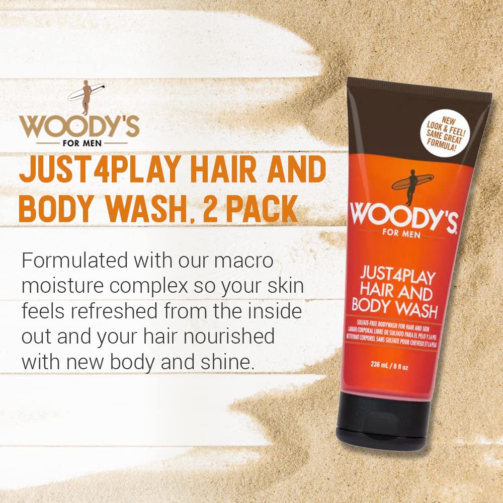 Woody'S Activated Charcoal Body Wash For Men - Deep Cleansing, Exfoliating Face & Body Wash, Hydrating Formula With Walnut Extracts, Fresh Scent, 8 Oz