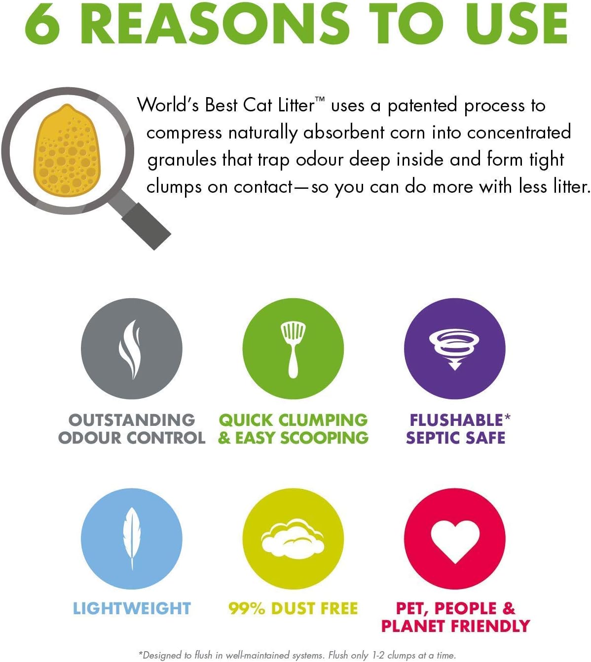 99 Percent dust free - corn is free of silica dust naturally; so you and your cat can breathe easy