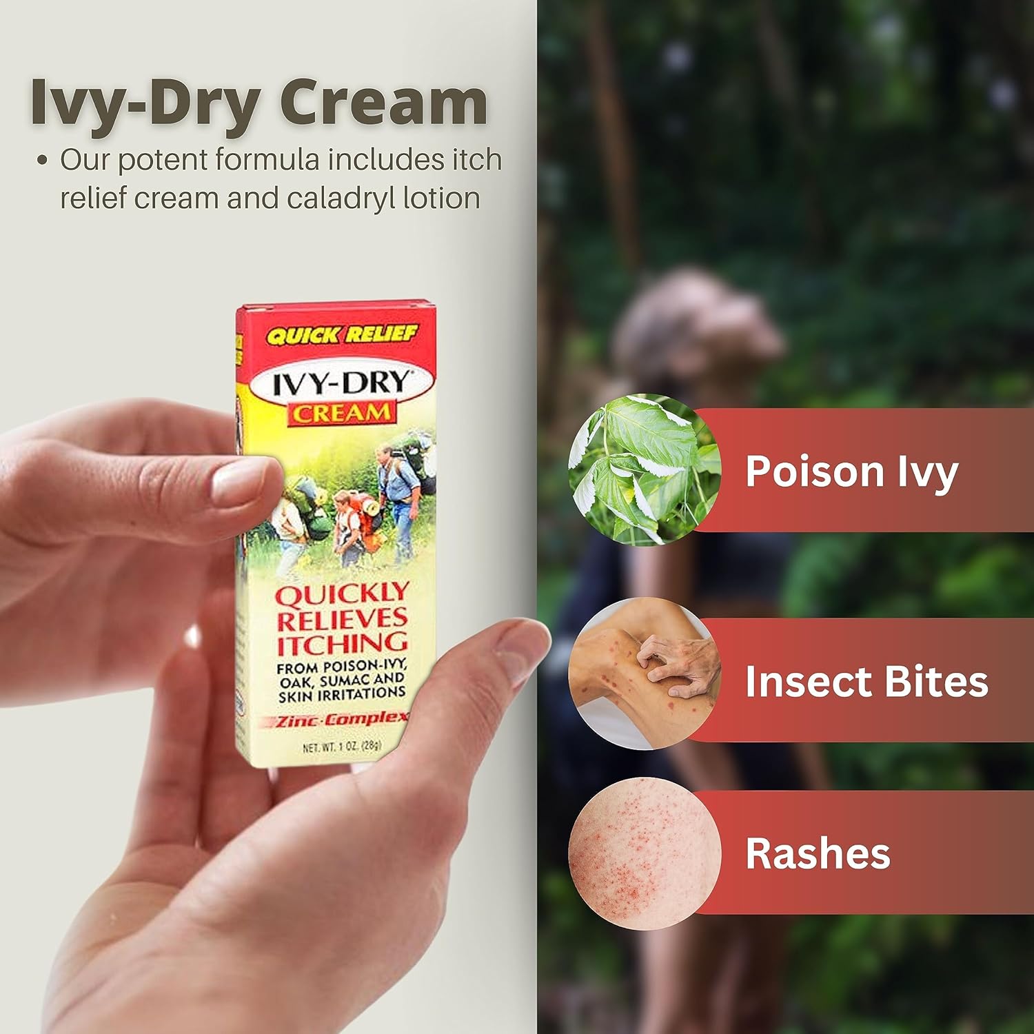 Versatile Relief: Ivy-Dry Cream is more than just poison ivy cream. It's also your poison ivy lotion, caladryl lotion alternative, and poison ivy soap substitute, ensuring poison ivy relief products that cover all your needs