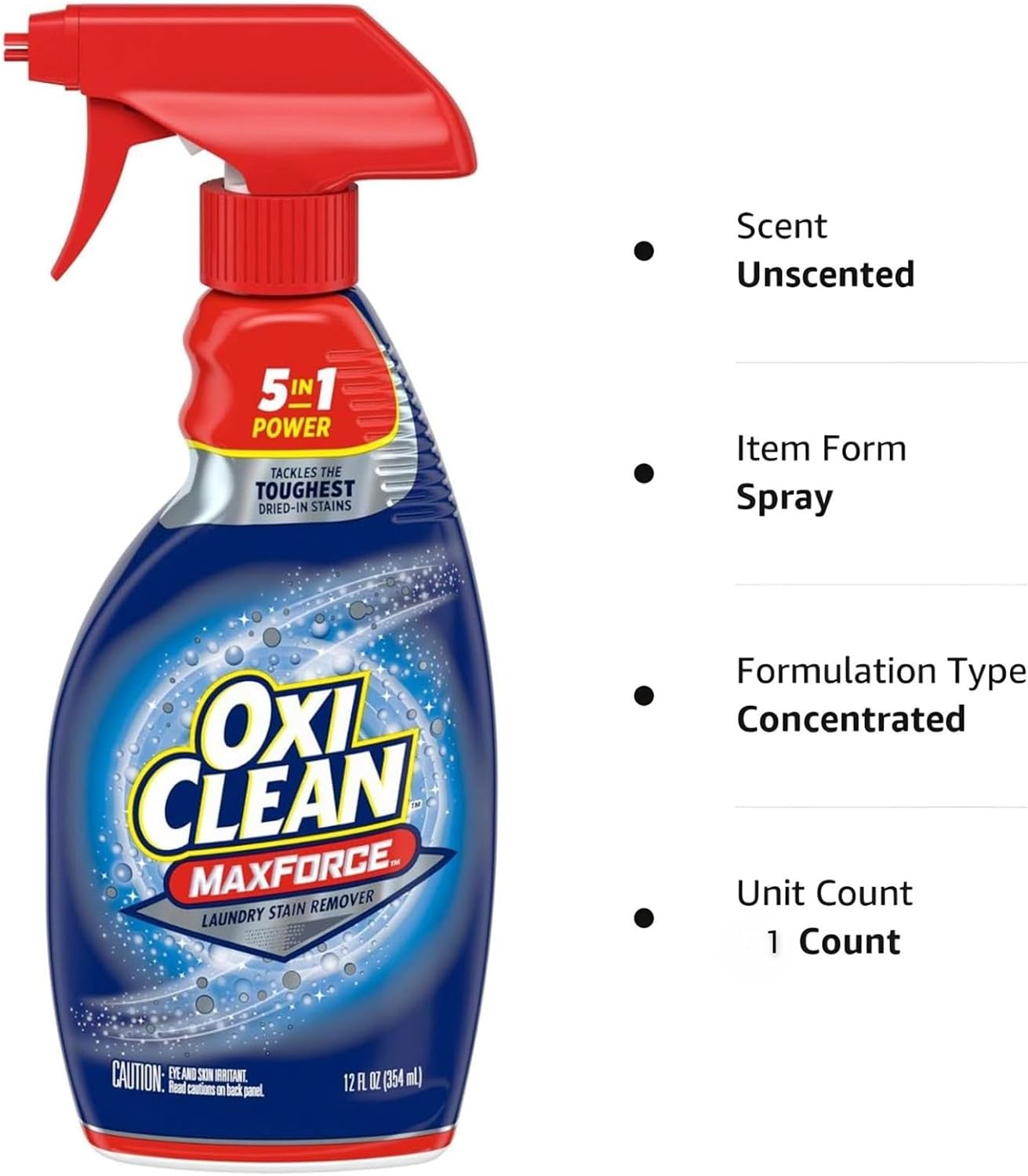 Xiclean Max Force Laundry Stain Remover Gel Stick 6.2Oz & Oxiclean Spray 12 Oz | Bundled With Stain Remover (Pack Of 1)
