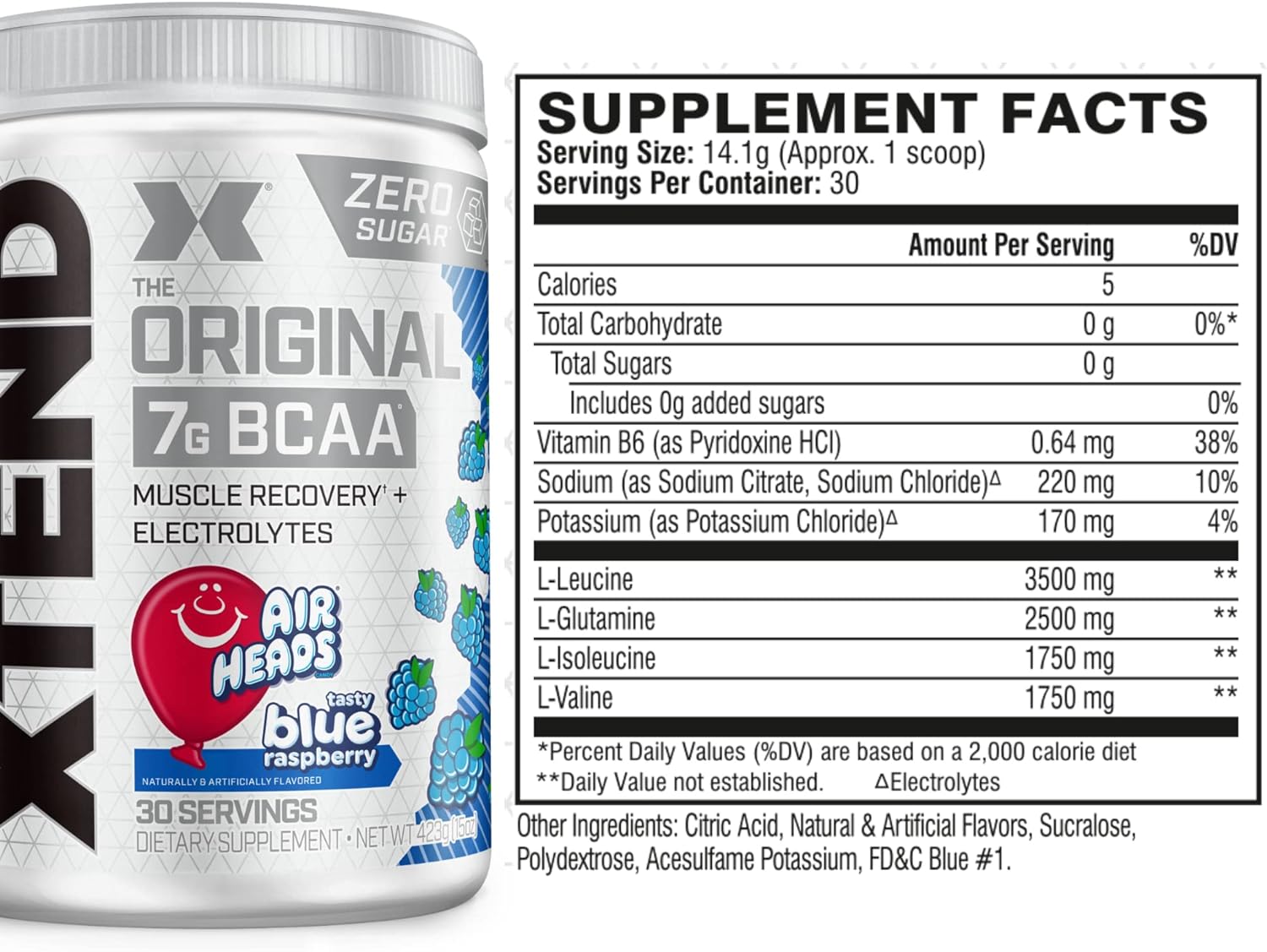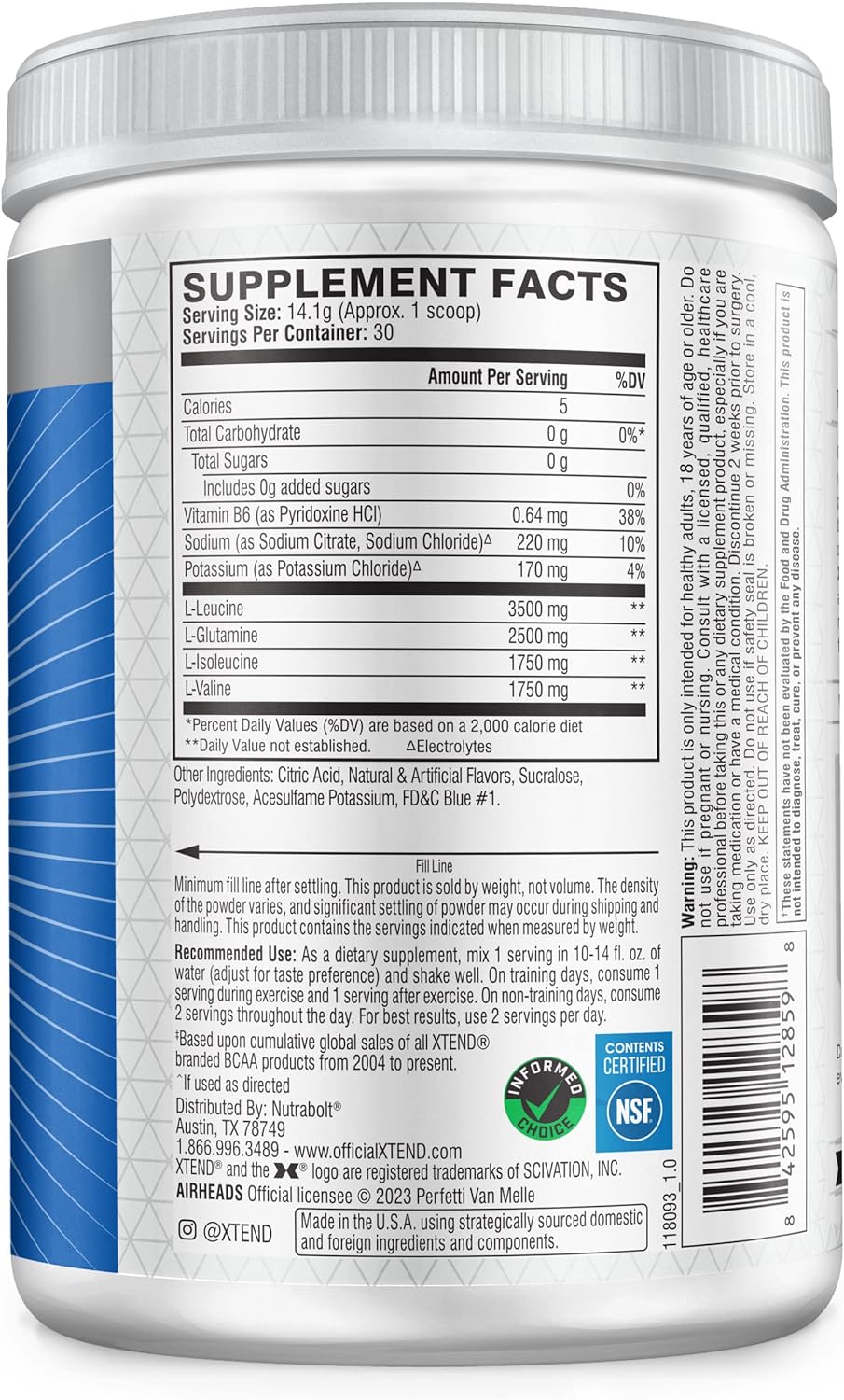 Xtend Original Bcaa Powder Airheads Candy Flavor, 7G Bcaa And 2.5G L-Glutamine, Sugar Free Post Workout Muscle Recovery Drink With Amino Acids For Men & Women, 30 Servings