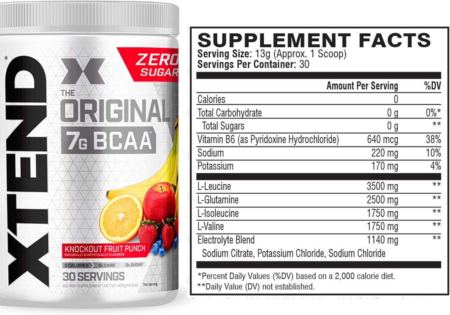 Xtend Original Bcaa Powder Knockout Fruit Punch | Sugar Free Post Workout Muscle Recovery Drink With Amino Acids | 7G Bcaas For Men & Women | 30 Servings