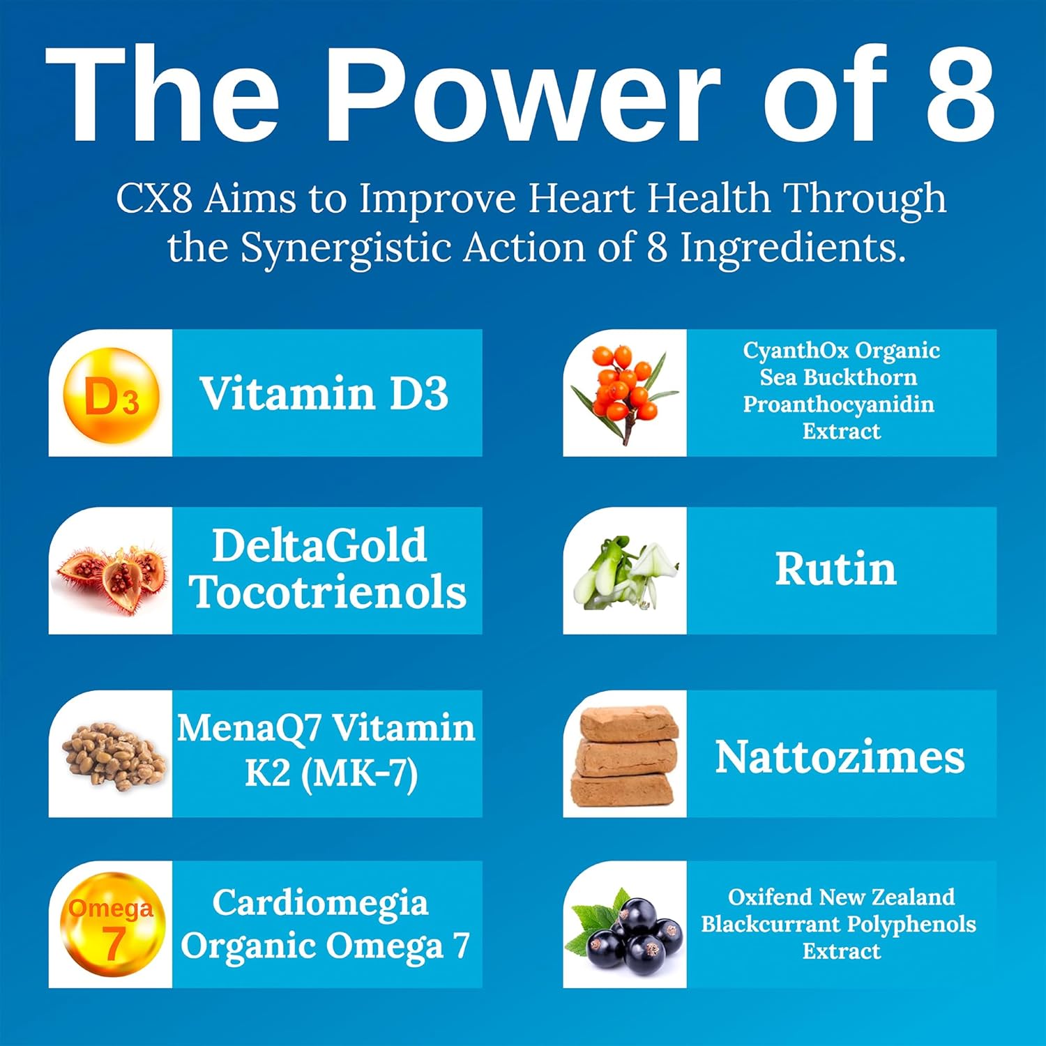 CELLULAR SUPPORT: Swelling plays a complex role in heart and artery health. To combat this, CX8 contains tocotrienol complex, a potent vitamin E that aids this swelling