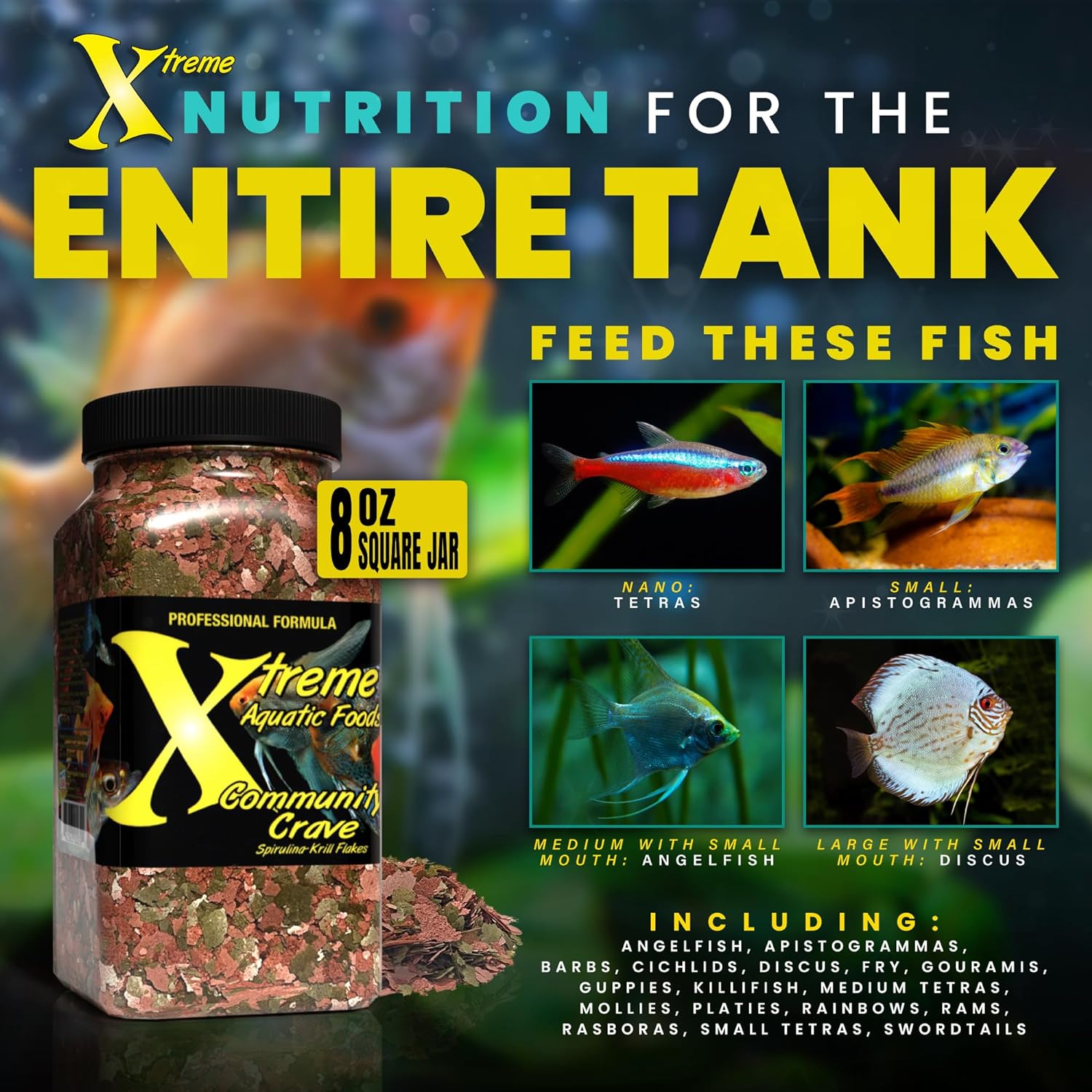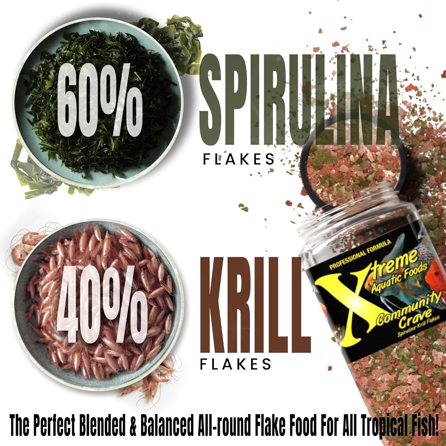 Xtreme Community Crave Flake - Krill & Spirulina Blend For Vibrant Colors, Immune Support And Digestive Health, Tropical & Freshwater Fish Nutrition β Premium Community Aquarium Food (8Oz)