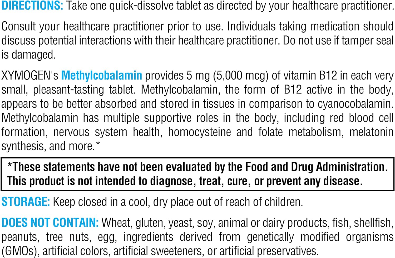 Xymogen Methylcobalamin 5,000 Mcg - Vitamin B12 Supplement In Small, Pleasant-Tasting Tablets - Supports Healthy Methylation, Neurological Health, A Healthy Immune System (120 Tablets)