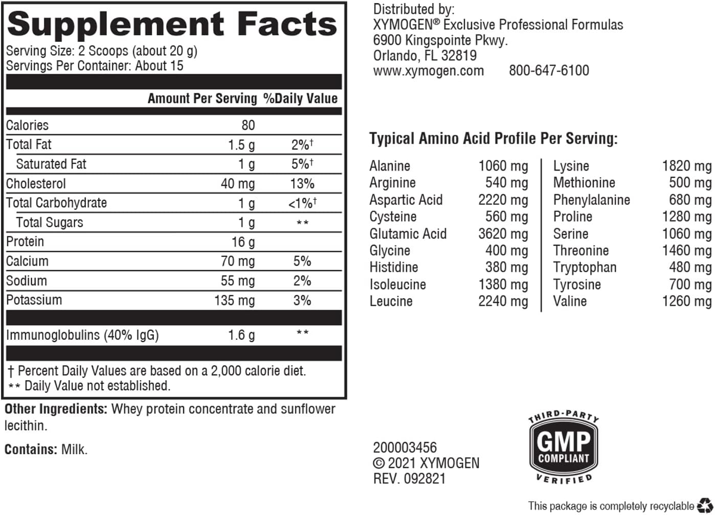 DESCRIPTION : XYMOGEN Whey Protein (10.6 oz) + IG Immunoglobulin Supplement (120 Capsules) 2-Product Bundle - Whey Protein Powder with Immunoglobulins for Immune Support