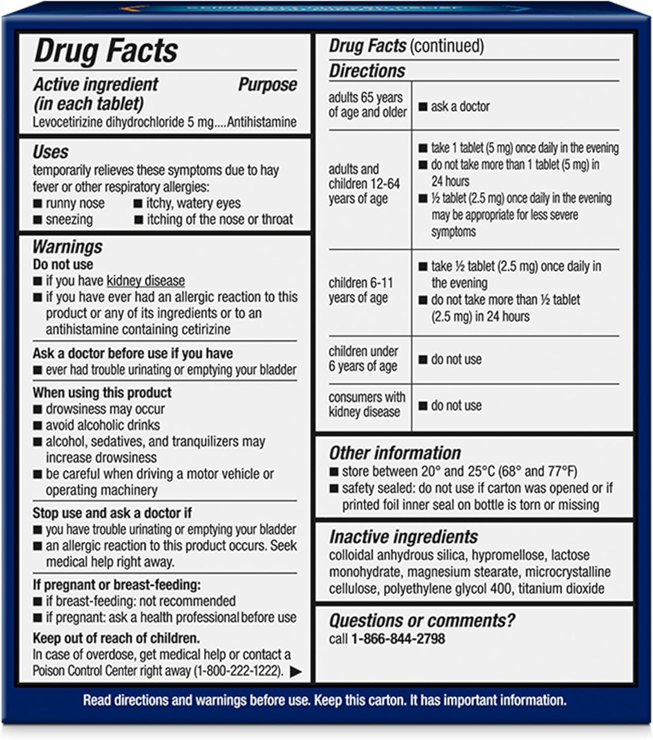 Contains: One (1) 35-Count Bottle Of Xyzal Allergy Pills, 24-Hour Allergy Relief, Original Prescription Strength