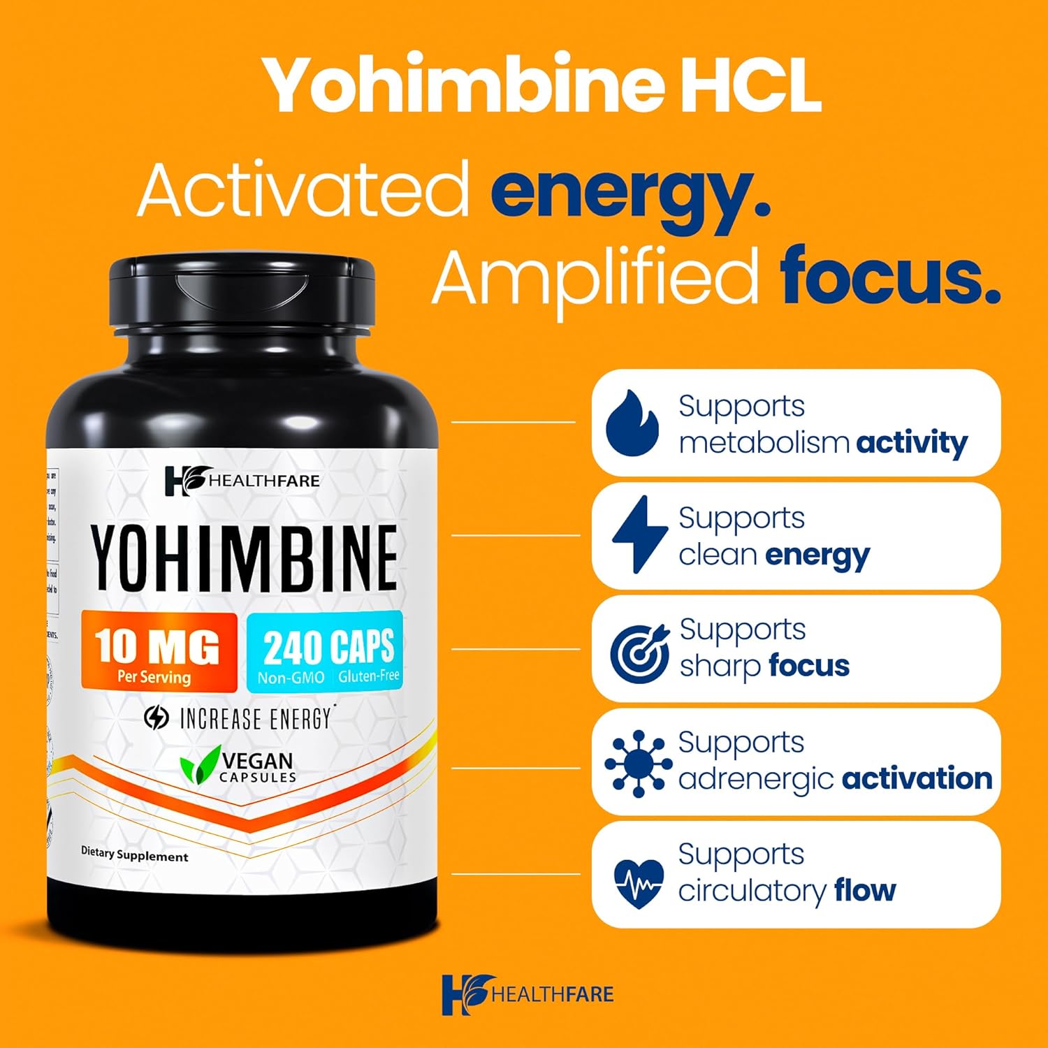 Yohimbine Hcl 10Mg | 240 Vegan Capsules | Maximum Strength Formula | Non-Gmo & Gluten-Free | Made In Usa