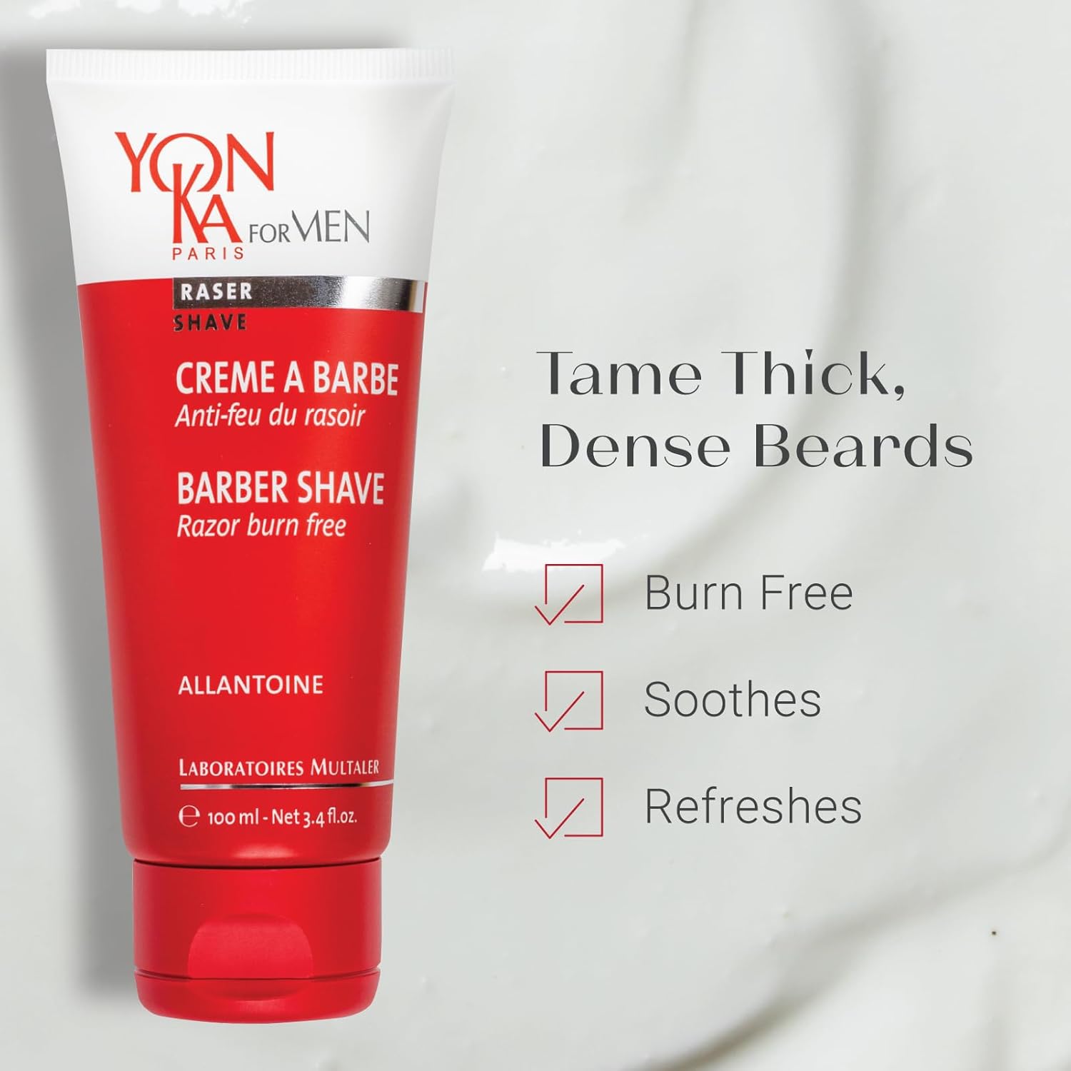 Yon-Ka Men'S Barber Shave Cream β Razor Burn Free Shaving Cream With Citrus Oils, Patchouli & Peppermint, Soothes Sensitive Skin, Allantoin & Vitamin B5, For Thick Beards & Smooth Shaves (100Ml)