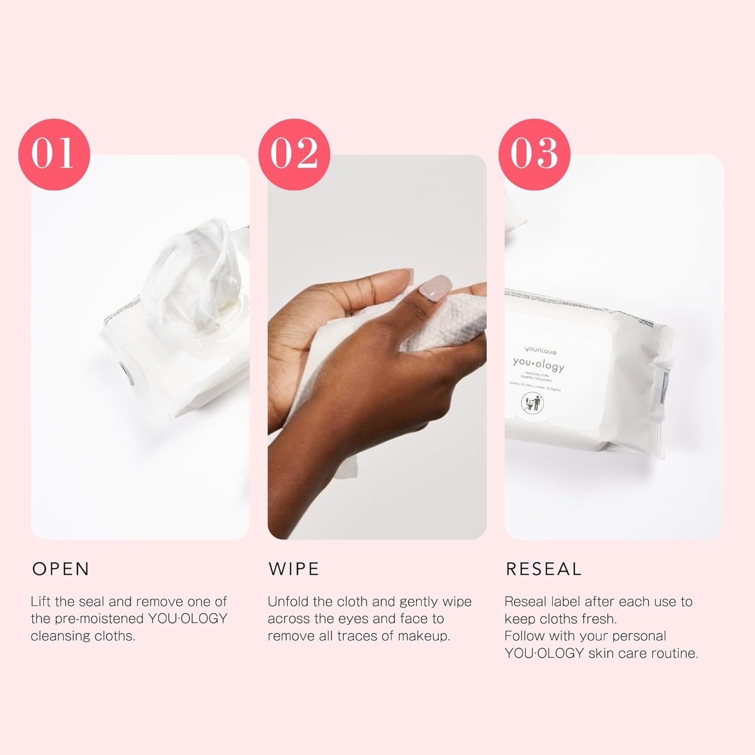 You·Ology Cleansing Cloths | 36 Wipes | Makeup Remover Towelettes With Vitamin E, Jojoba & Olive Oil | Gentle, Conditioning Facial Wipes For Soft, Refreshed Skin