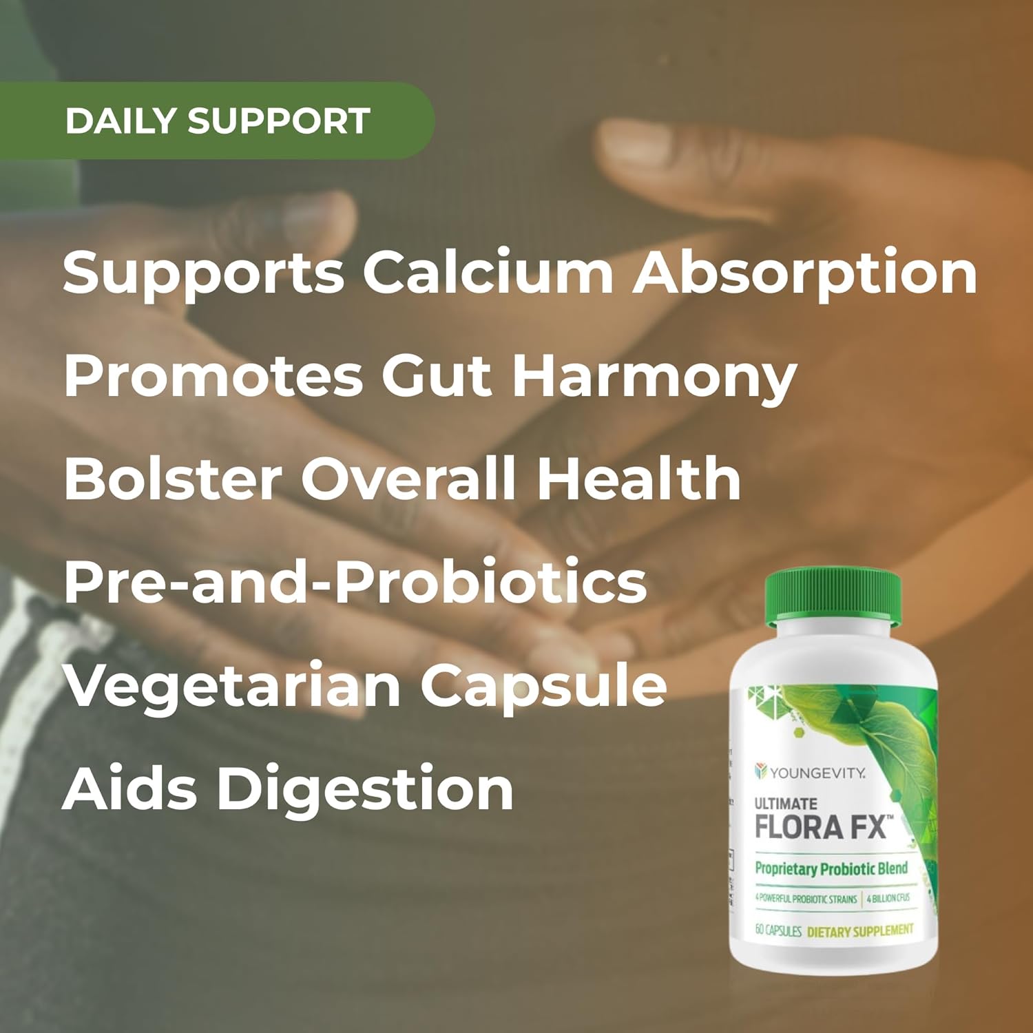 Digestive Support: Flora FX provides probiotics and prebiotics to support a healthy balance of gut flora and promote optimal digestive function
