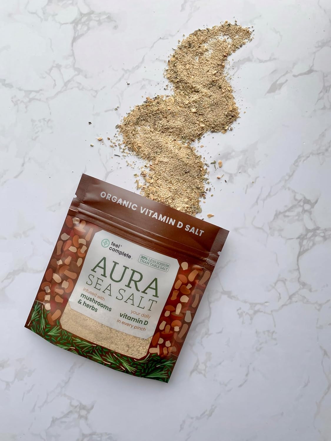 Your Daily Vitamin D In Every Pinch | Organic Aura Sea Salt | Infused Celtic Sea Salt With Mushrooms & Herbs | 30% Less Sodium Than Table Salt | 5 Months Of Vitamin D | 80G Resealable Pouch