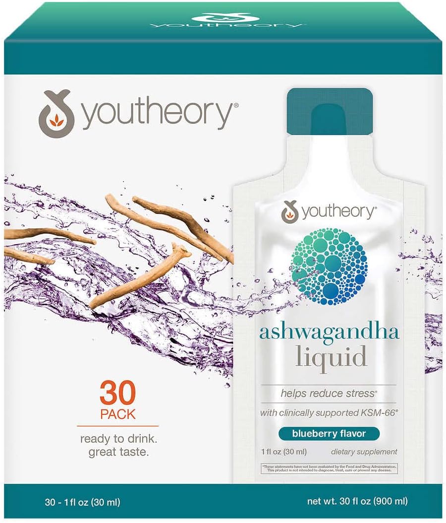 Youtheory Ashwagandha Liq 500 Mg, Blueberry Avor, 30 Packets