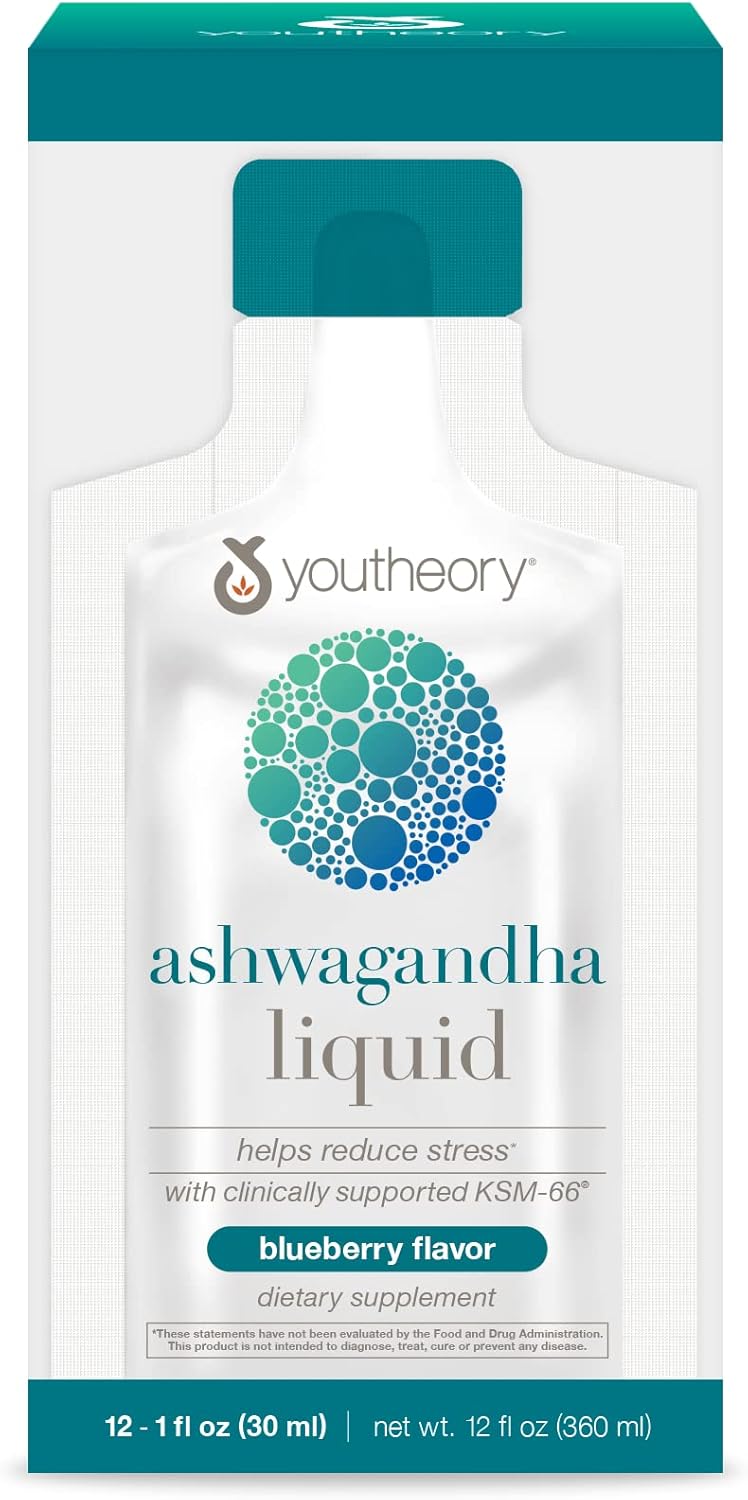Youtheory Ashwagandha Liq Blueberry Avor, 12 Single Serving Packets