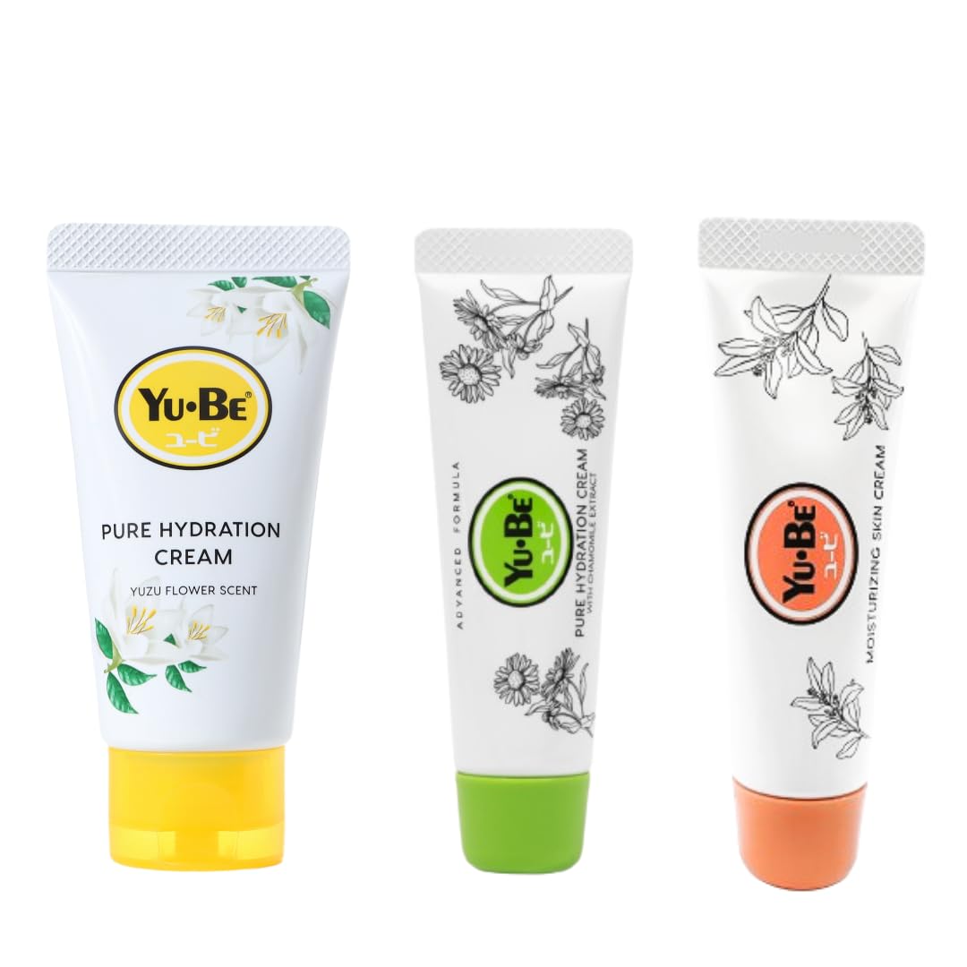 About this item MOISTURIZING TRIO: Yu-Be’s Moisturizing Skin Cream, Pure Hydration Cream, and Fragrance Free Advanced Formula are perfect for sensitive skin, safe for children, and contain no artificial fragrances or colors. YUZU PURE HYDRATION CREAM: Our Pure Hydration cream is softly scented with the aroma of Japan’s golden citrus treasure, the yuzu fruit. ADVANCED FORMULA PURE HYDRATION CREAM: Our fragrance free formula made with chamomilla recutita flower extract has skin-soothing properties, binds moisture to the skin, and makes the skin supple. ORIGINAL FORMULA MOISTURIZING SKIN CREAM: Our original formula hasn’t changed since 1957 and is made with camphor. Camphor’s fresh scent and smooth finish leave the skin feeling refreshed and itch-free. COMBAT CRACKED, DRY SKIN: Safe for face, lips, hands, and body! Soothe dry, itchy, irritated skin with Yu-Be’s hydrating creams. See more product details, MOISTURIZING TRIO: Yu-Be’s Moisturizing Skin Cream, Pure Hydration Cream, and Fragrance Free Advanced Formula are perfect for sensitive skin, safe for children, and contain no artificial fragrances or colors, YUZU PURE HYDRATION CREAM: Our Pure Hydration cream is softly scented with the aroma of Japan’s golden citrus treasure, the yuzu fruit, ADVANCED FORMULA PURE HYDRATION CREAM: Our fragrance free formula made with chamomilla recutita flower extract has skin-soothing properties, binds moisture to the skin, and makes the skin supple, ORIGINAL FORMULA MOISTURIZING SKIN CREAM: Our original formula hasn’t changed since 1957 and is made with camphor. Camphor’s fresh scent and smooth finish leave the skin feeling refreshed and itch-free, COMBAT CRACKED, DRY SKIN: Safe for face, lips, hands, and body! Soothe dry, itchy, irritated skin with Yu-Be’s hydrating creams