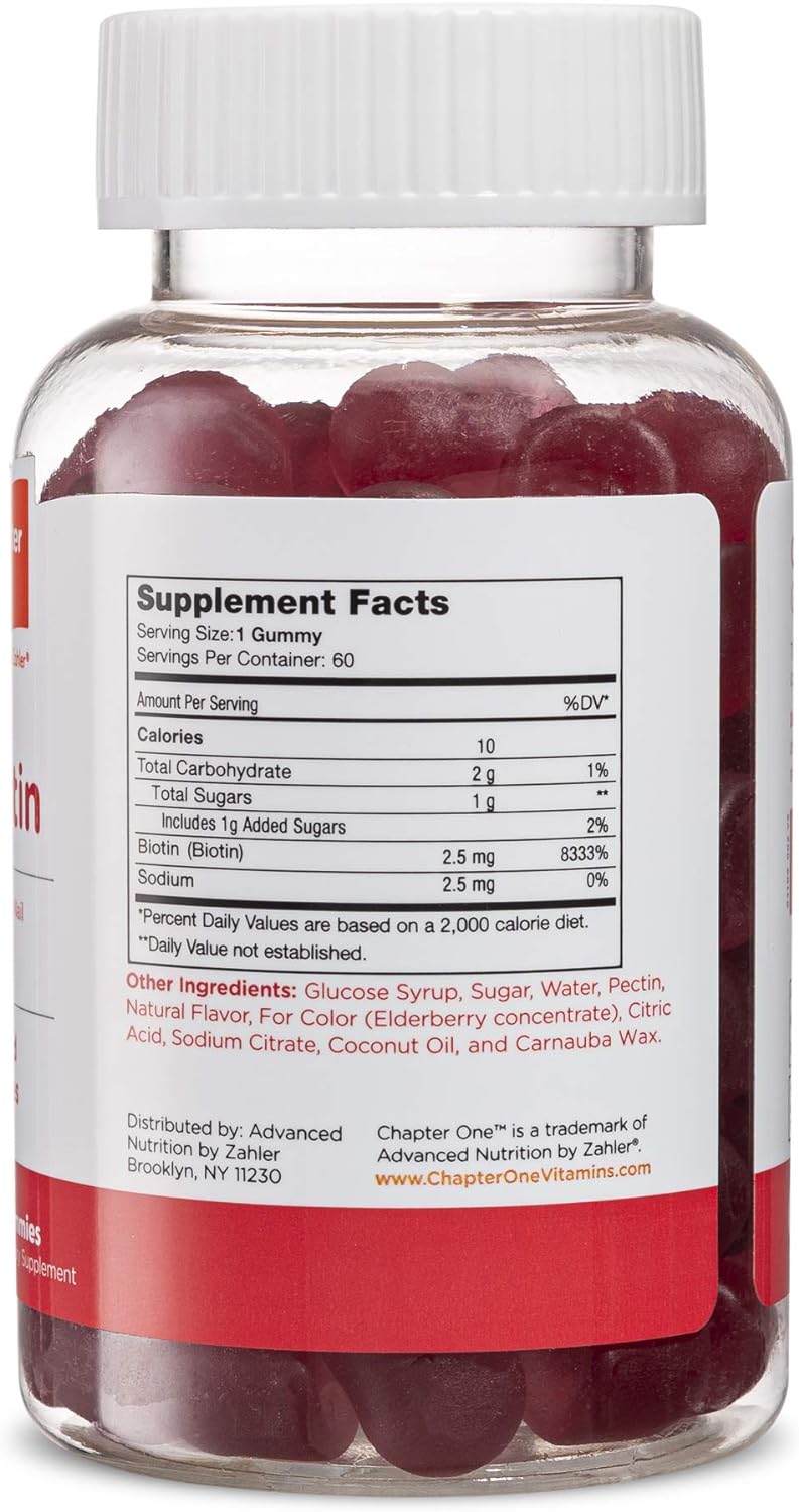 DESCRIPTION : Zahler Chapter One Biotin Gummies, Hair Skin and Nails Fortifying Biotin, Certified Kosher, 60 Flavored Gummies