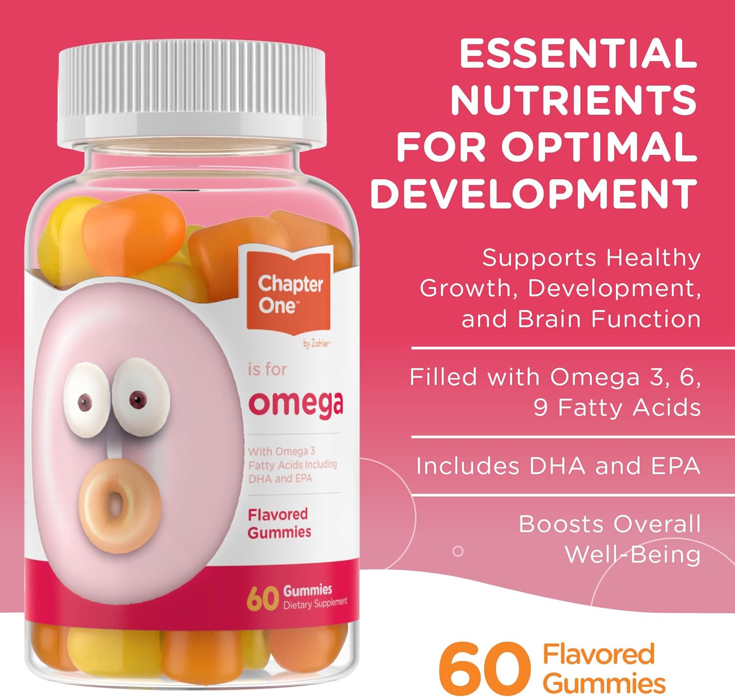 Zahler - Chapter One Omega 3 Gummies for Kids with No Fish Oil (60 Count) - Kosher Omega 3 6 9 Fatty Acids, EPA, DHA - Easy to Take Omega 3 Supplement for Healthy Growth, Development & Brain Function